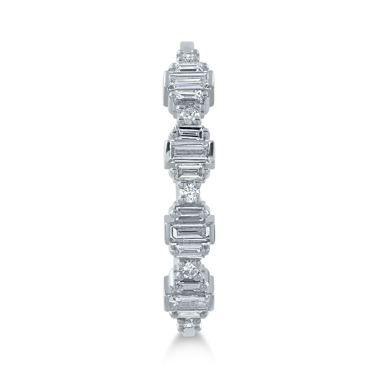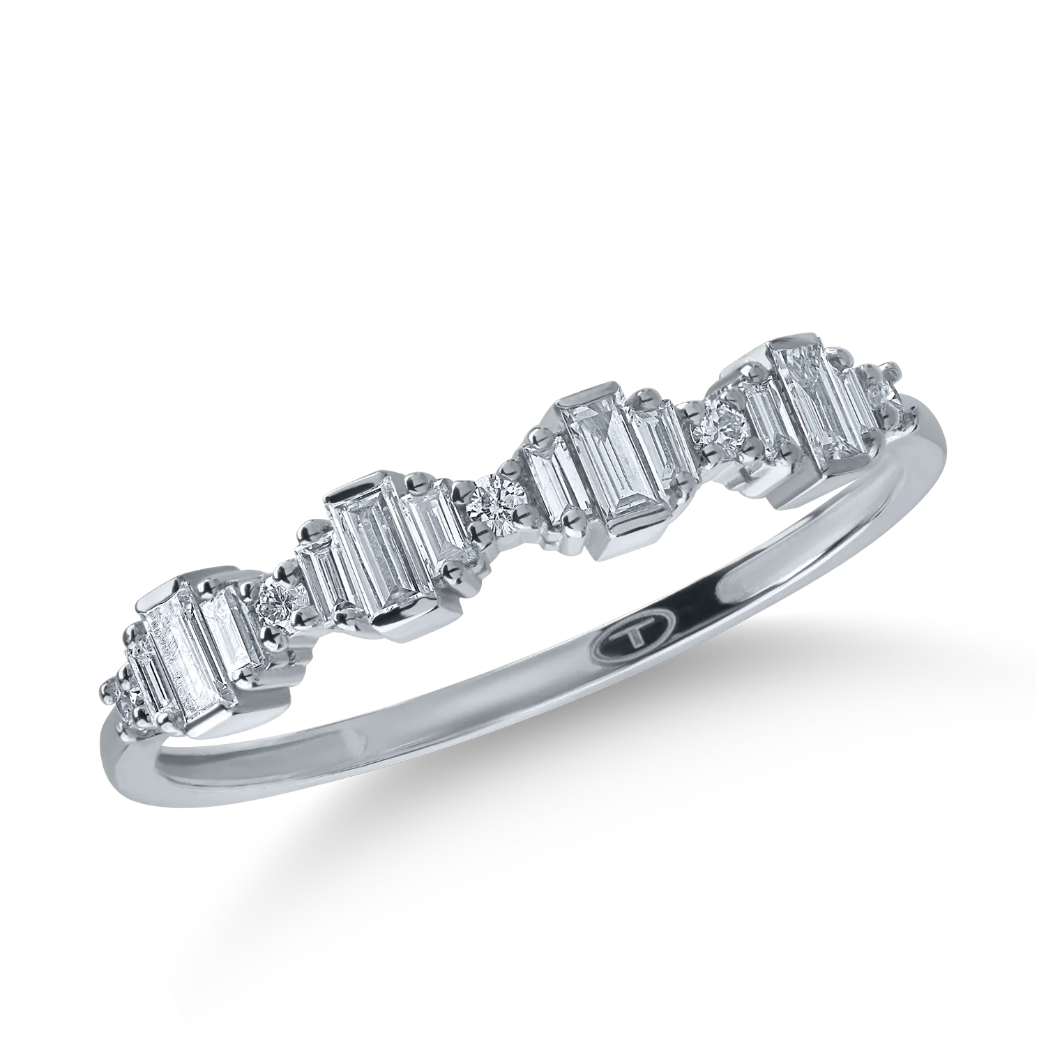 Feminitate si atitudine. Cu un design original, acest inel din aur alb cu diamante cu taietura baguette de 0.2ct surprinde prin eleganta subtila a formelor si luminozitatea rafinata a pietrelor. Taietura baguette confera bijuteriei un aer contemporan, prin jocul geometric al fatetelor care capteaza lumina cu precizie. Este o creatie fina, menita sa aduca un accent de eleganta oricarei aparitii. Imprumuta fiecarei zile o frumusete speciala cu TEILOR!