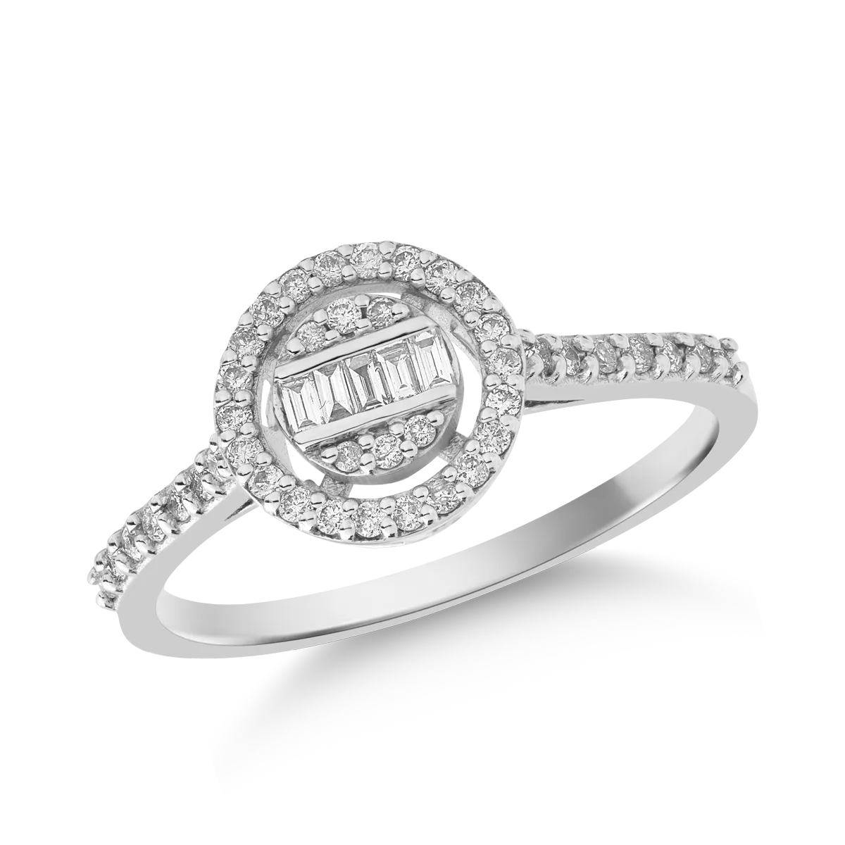 Inel din aur alb cu diamante baguette si rotunde de 0.3ct