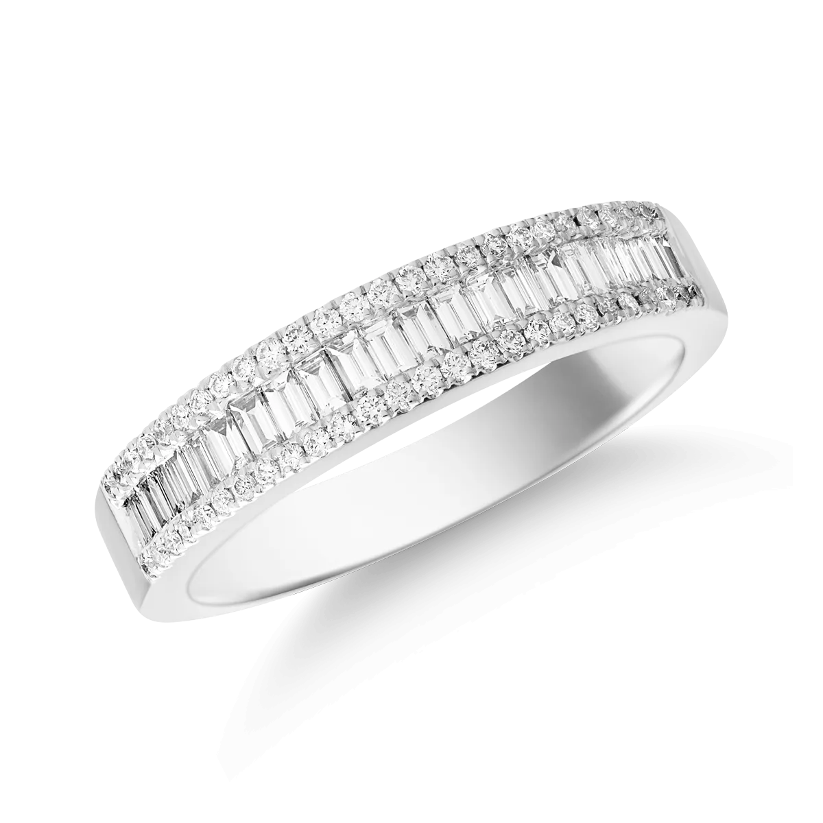 Inel din aur alb cu diamante baguette si rotunde de 0.48ct