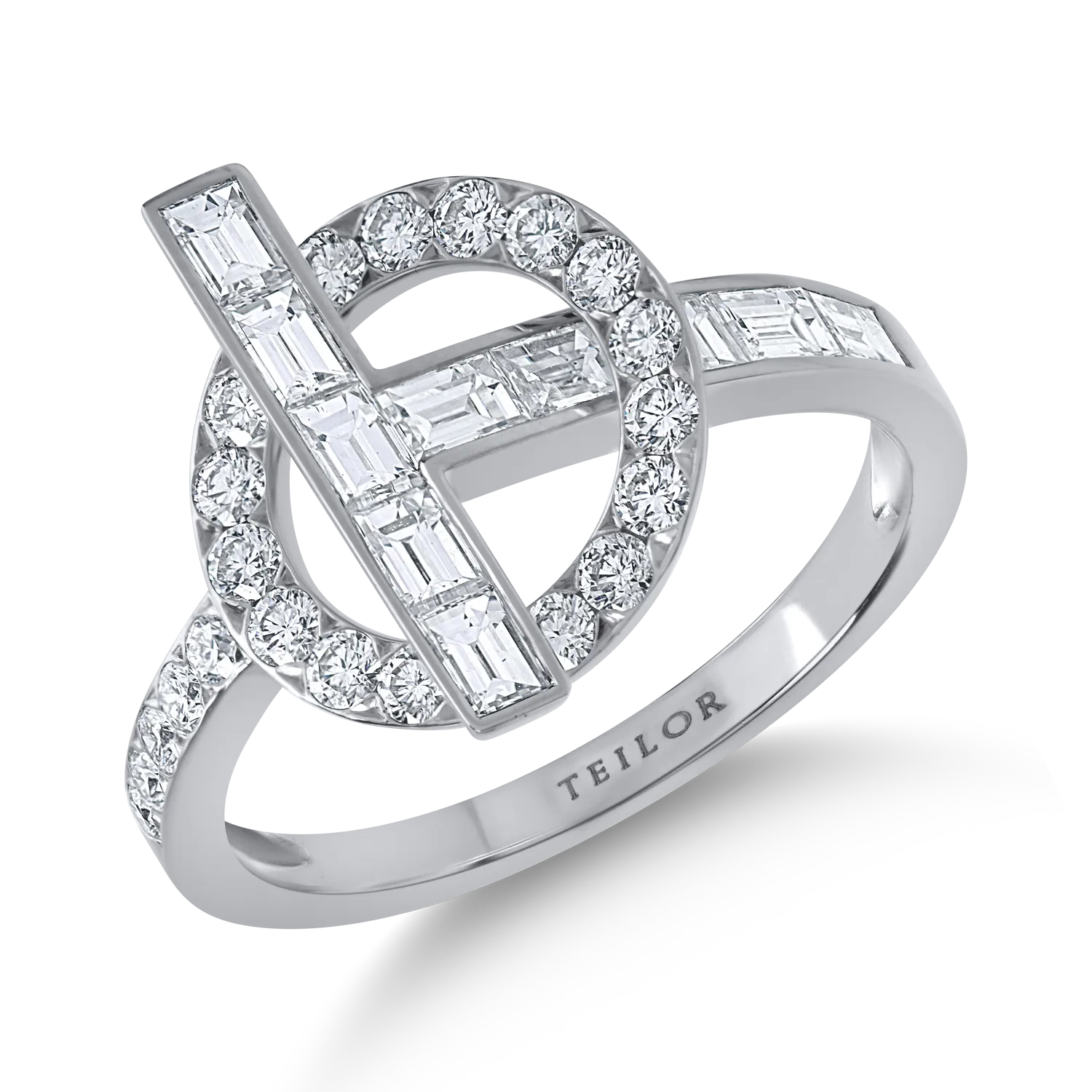 Inel din aur alb cu diamante baguette si rotunde de 1.1ct