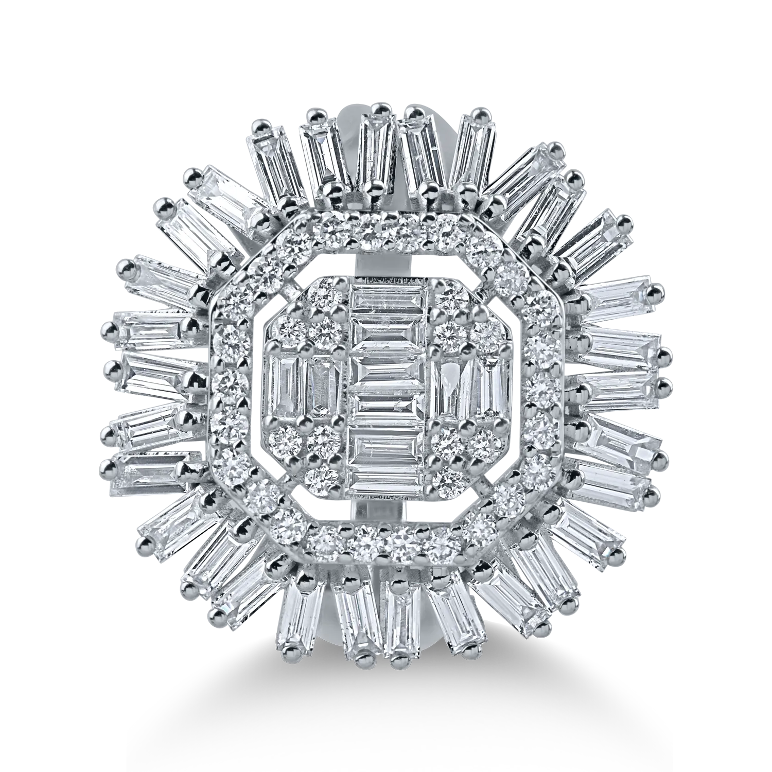 Inel din aur alb cu diamante baguette si rotunde de 1.2ct