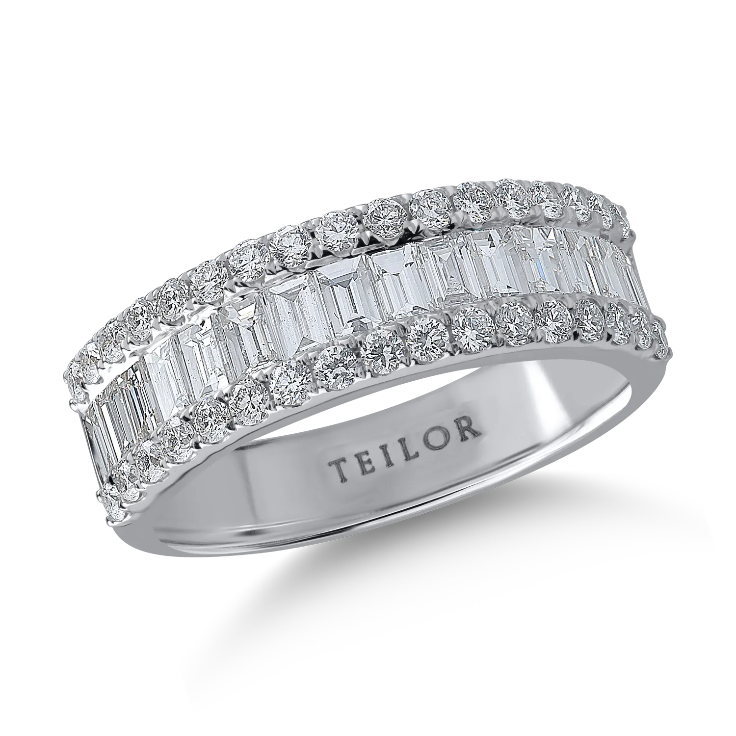 Inel din aur alb cu diamante baguette si rotunde de 1.4ct