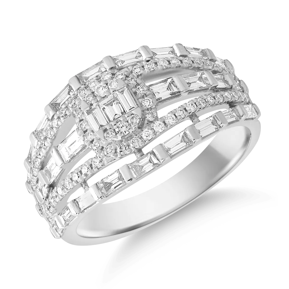 Inel din aur alb cu diamante baguette si rotunde de 1ct