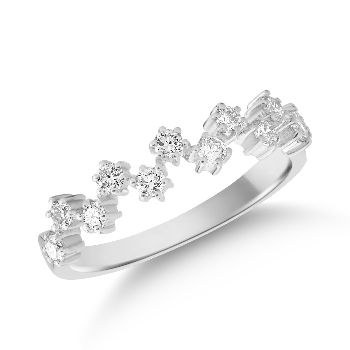 Exprima-ti autenticitatea cu bijuteriile pe care le porti. Cu un design original, inelul din aur alb cu diamante de 0.4ct te poarta intr-o calatorie unica, iti accentueaza farmecul si ofera o alura vibranta stilului tau. Alege piesele care confera expresivitate personalitatii tale.