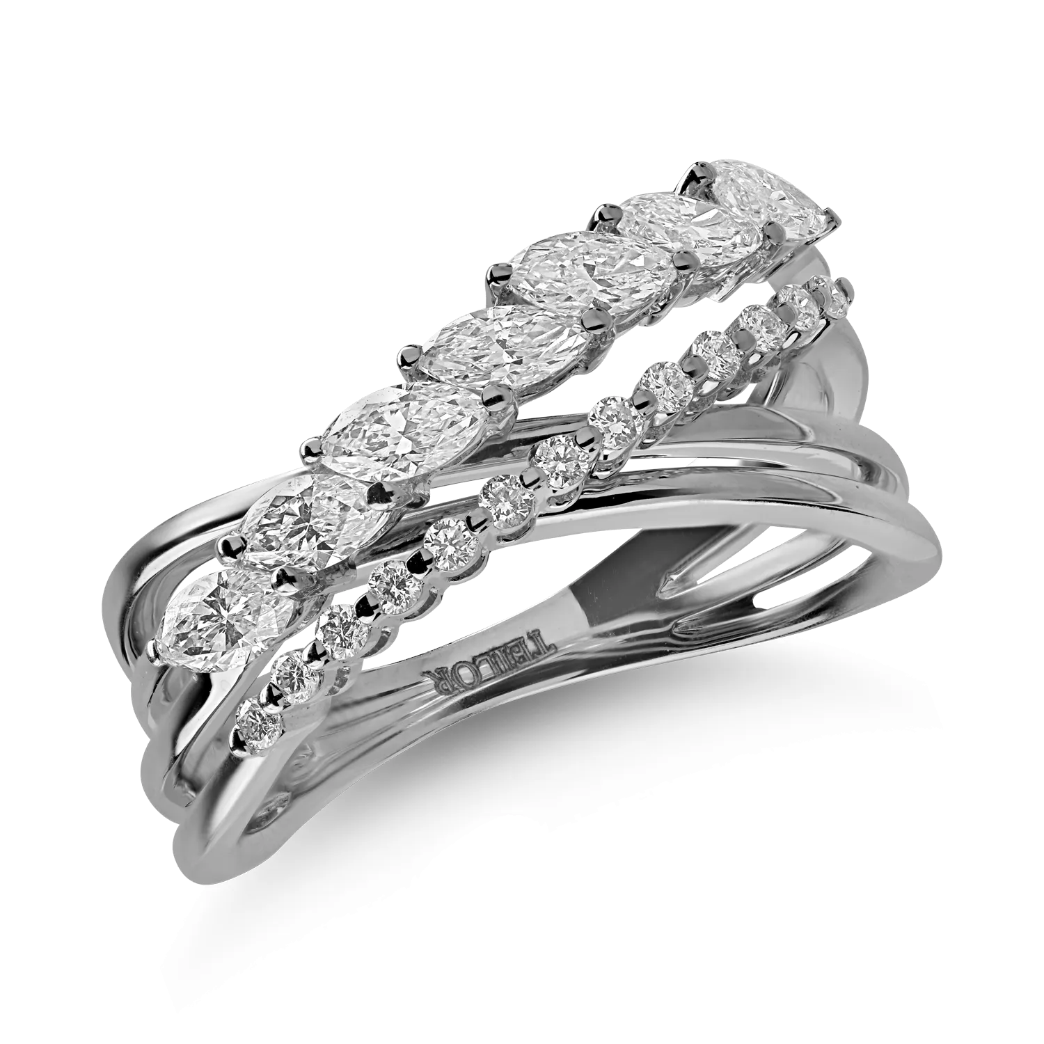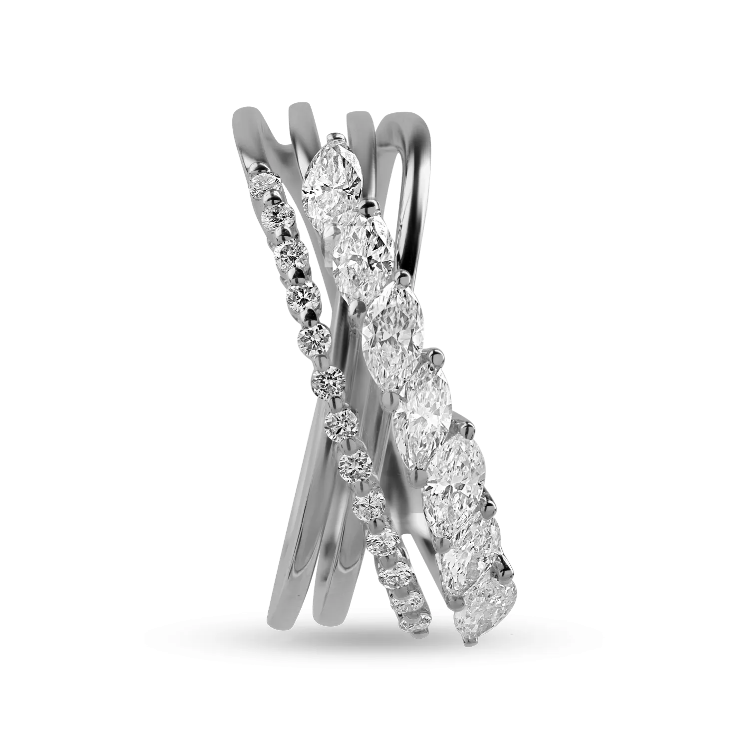 Feminitate si atitudine. Versatil, cu influente moderne, acest inel din aur alb cu diamante de 0.74ct ofera tinutelor tale o nota sofisticata. Alege piesele care ti se potrivesc perfect cu TEILOR.