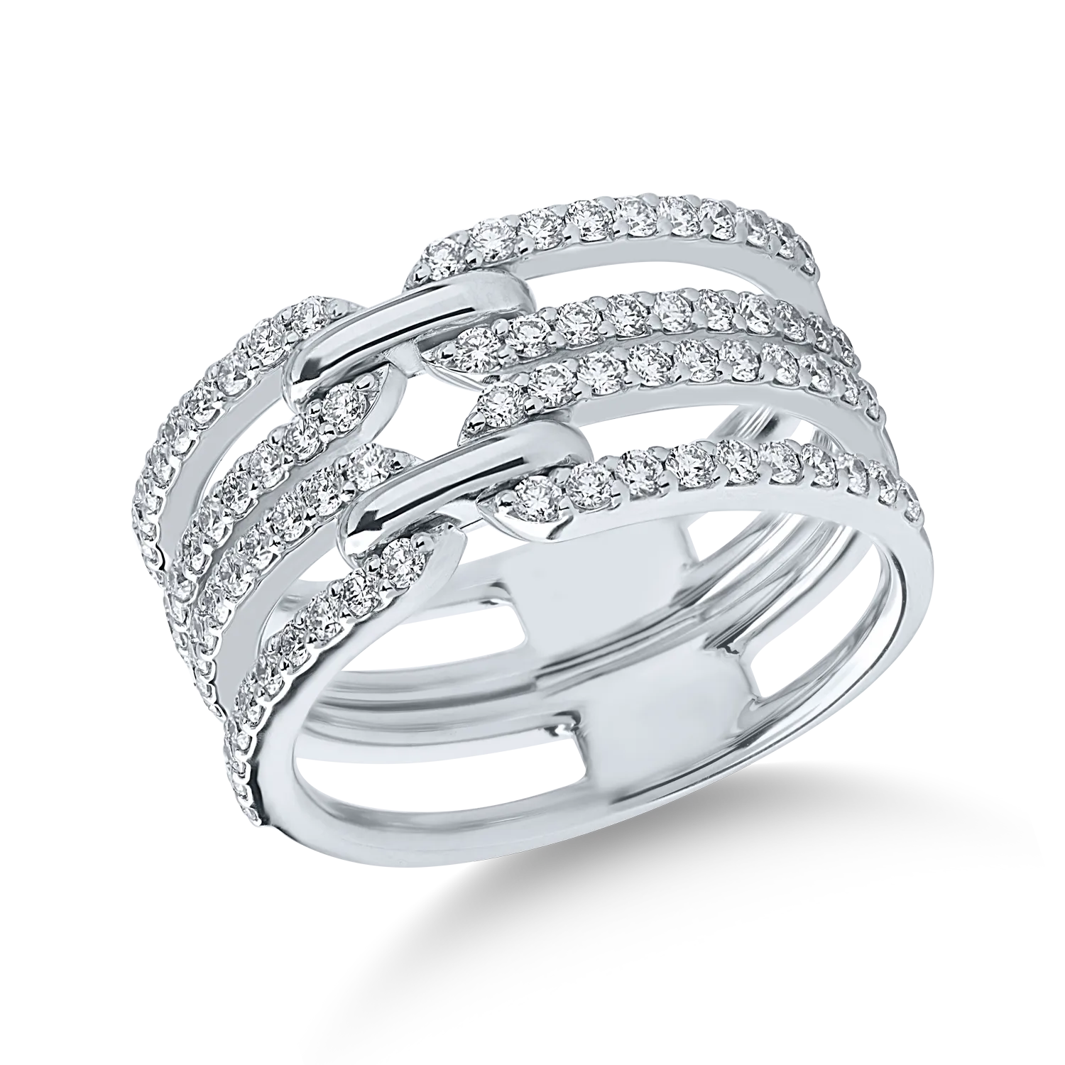 Feminitate si atitudine. Originalitatea si rafinamentul se intalnesc in acest inel din aur alb cu diamante de 0.83ct creat pentru a-ti accentua farmecul personal. O combinatie naturala a luxului, o piesa memorabila pentru femeile puternice.