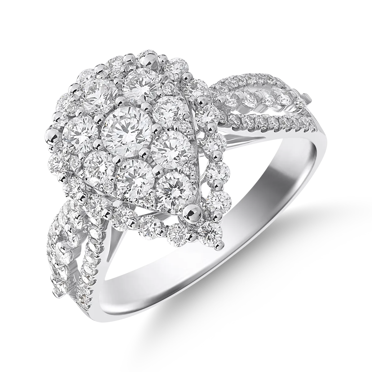 Doar prin prezenta lor, bijuteriile vorbesc despre tine. Versatil, cu influente moderne, acest inel din aur alb cu diamante de 1.1ct ofera tinutelor tale o nota sofisticata. Imprumuta fiecarei zile o frumusete speciala cu TEILOR.