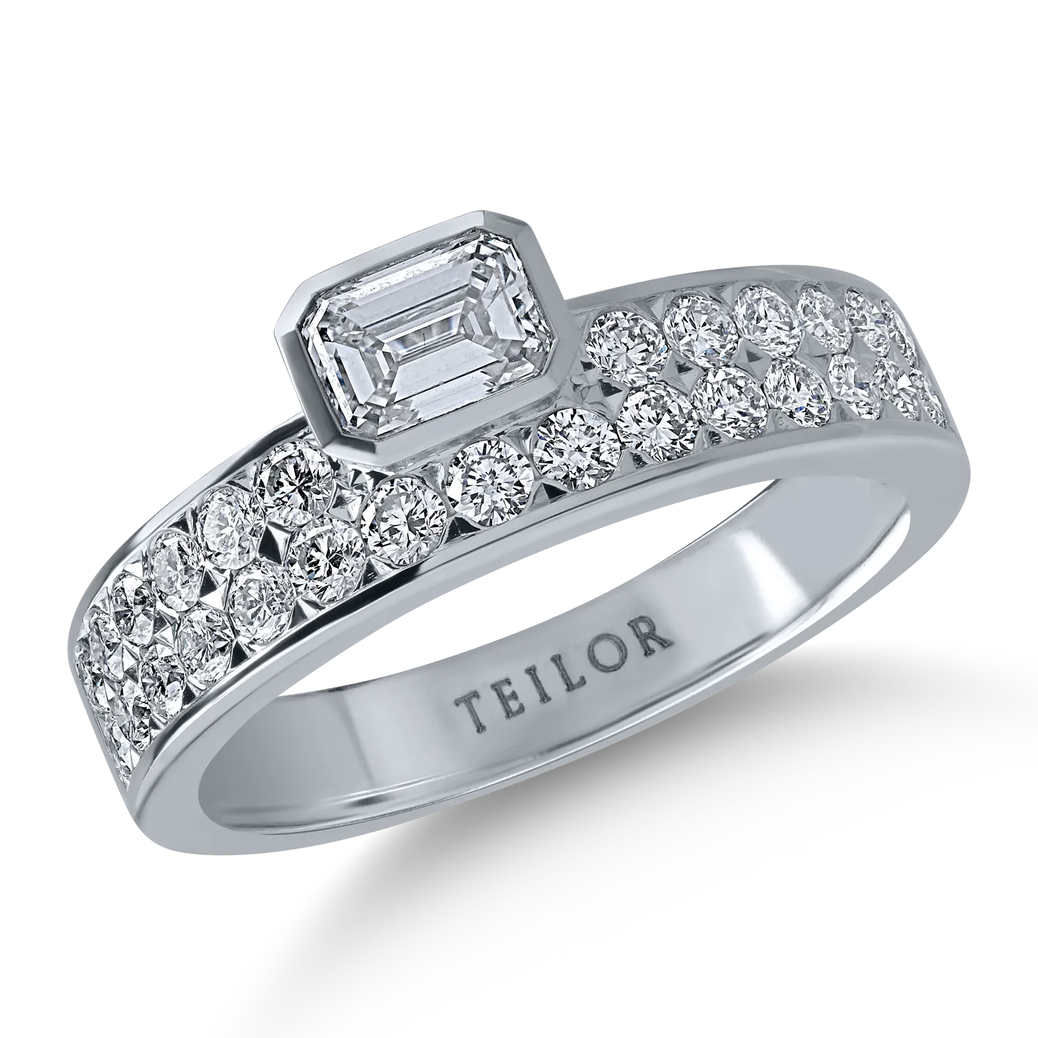 Inel din aur alb cu diamante emerald si rotunde de 1.09ct