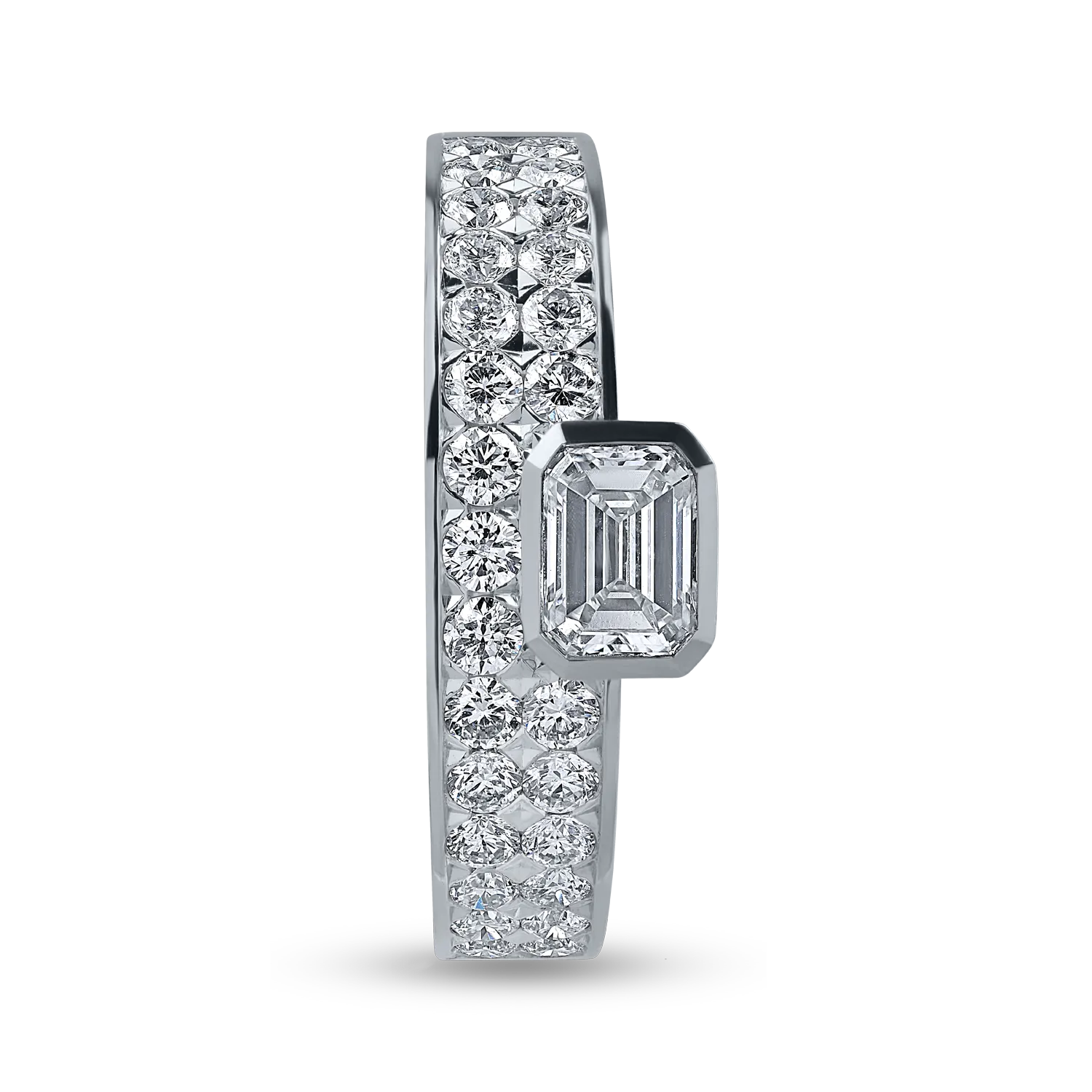 Feminitate si atitudine. Versatil si modern, acest inel din aur alb cu diamante emerald si rotunde de 1.09ct imbina perfect stralucirea discreta si eleganta naturala. Taieturile emerald aduc o nota arhitecturala si curata, in timp ce diamantele rotunde adauga echilibru si rafinament. Aurul alb confera un luciu sofisticat, potrivit oricarui moment al zilei. O bijuterie ce defineste increderea si farmecul subtil. O combinatie naturala a luxului, o piesa memorabila pentru femeile puternice!