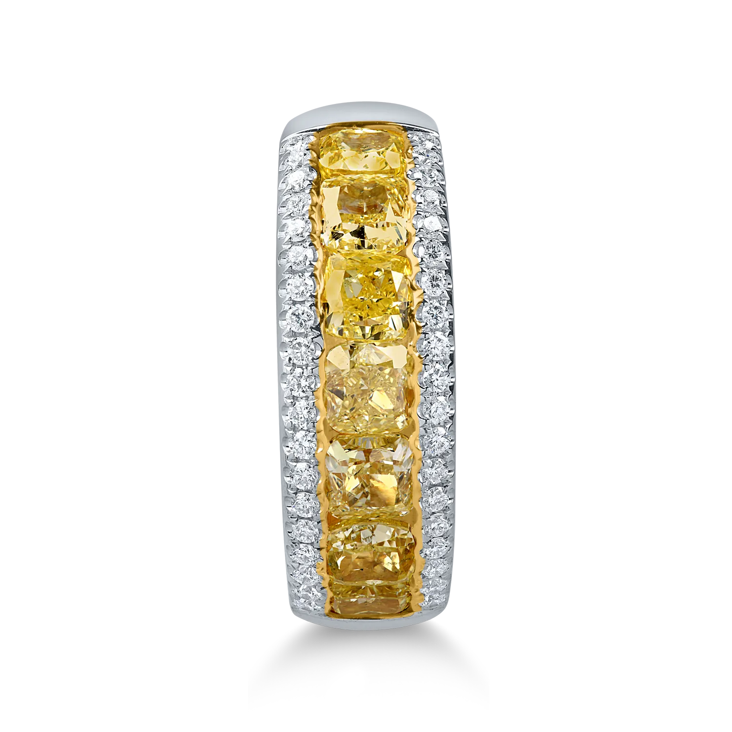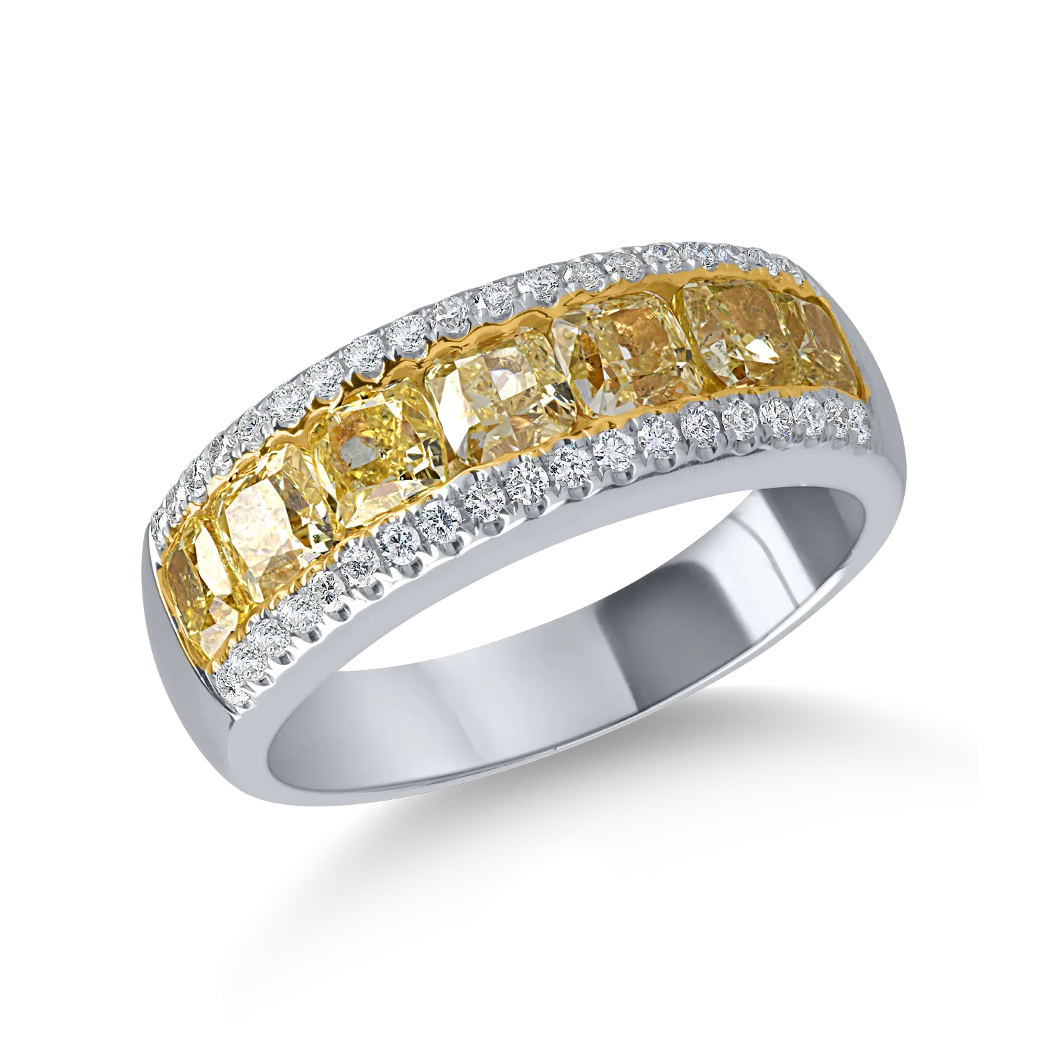 Inel din aur alb cu diamante galbene cushion si diamante incolore de 2.2ct