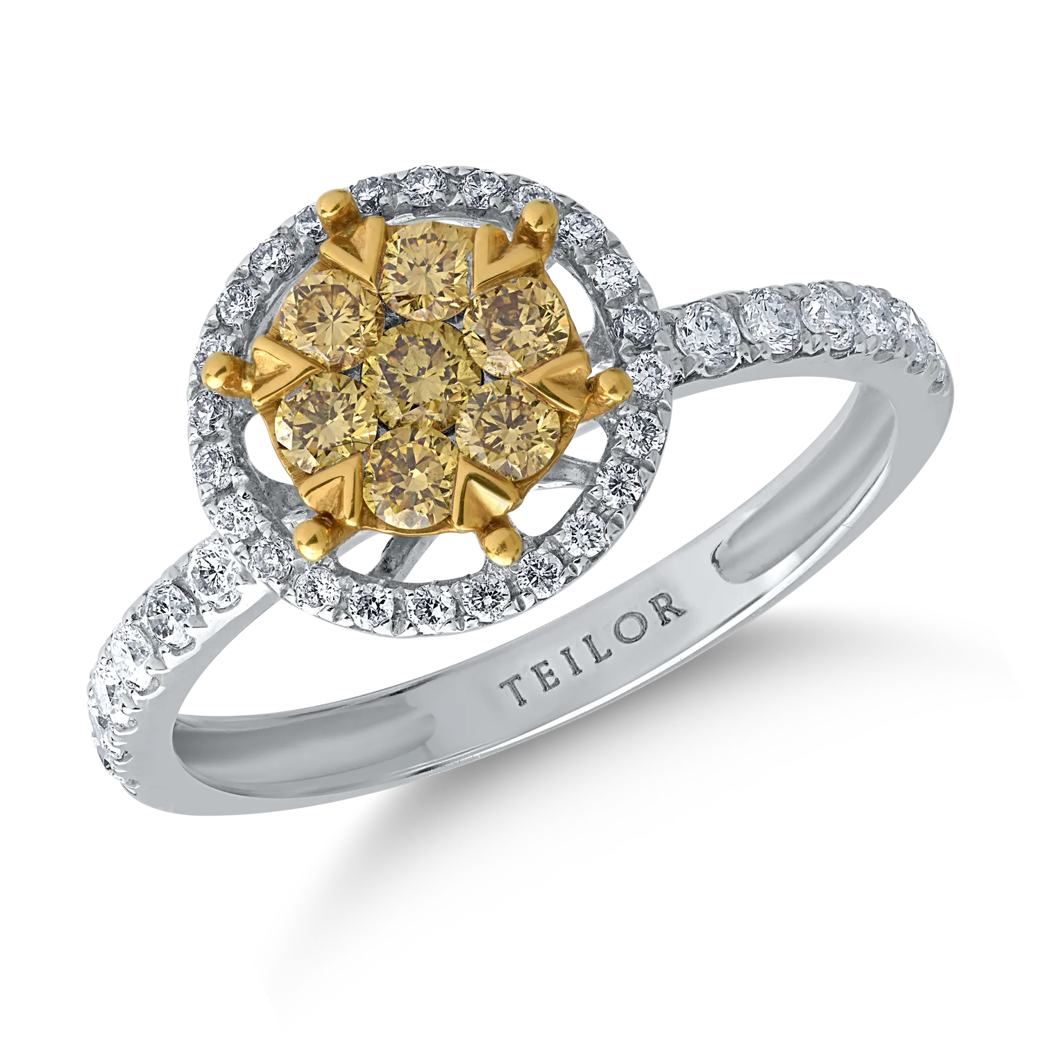 Inel din aur alb cu diamante galbene de 0.32ct si diamante transparente de 0.31ct