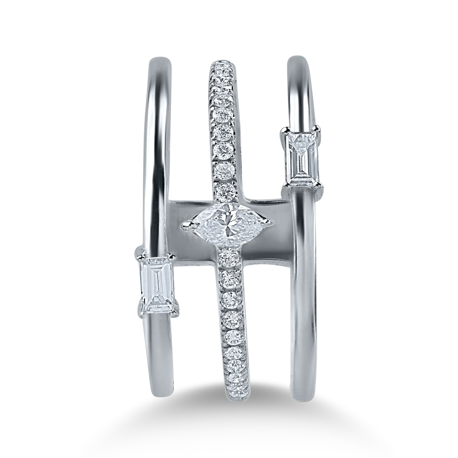 Inel din aur alb cu diamante marquise, baguette si rotunde de 0.41ct