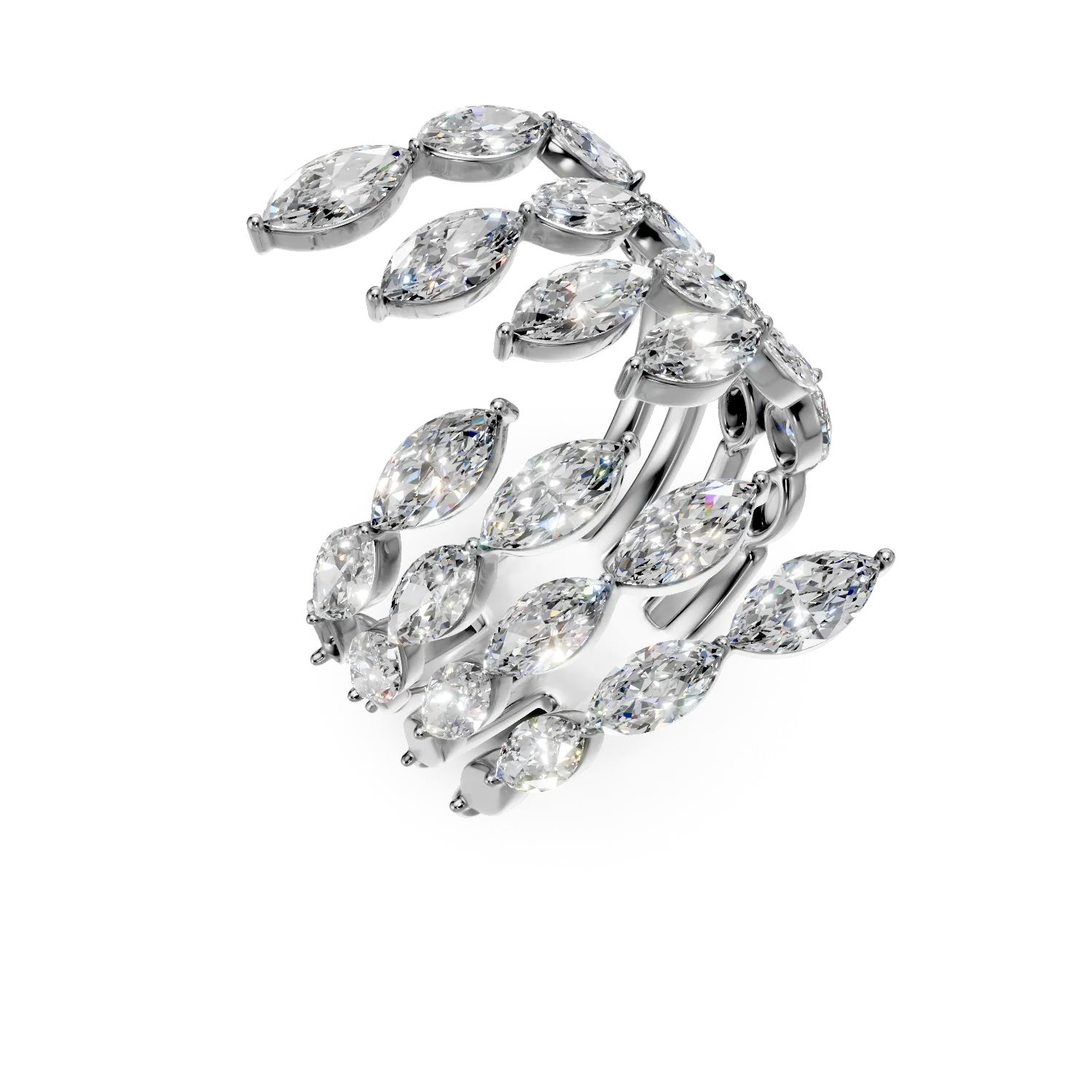 Feminitatea capata noi forme de expresie. Acest inel din aur alb cu diamante cu taietura marquise de 2.5ct surprinde prin silueta sa alungita, cu capete ascutite ce simbolizeaza aspiratia si curajul. Stralucirea continua a diamantelor si fluiditatea designului contureaza o piesa de o eleganta senzuala, ce pune in valoare gesturile fine ale mainii. Este o interpretare moderna a gratiei clasice, menita sa atraga priviri si sa inspire incredere. Alege perfectiunea cu TEILOR, o lume in care fiecare detaliu spune o poveste despre tine!