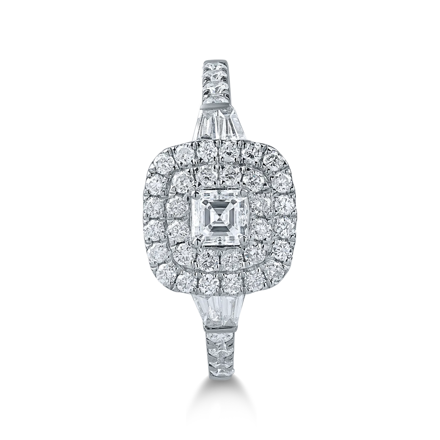 Inel din aur alb cu diamante microsetting assher, baguette si rotunde de 0.94ct