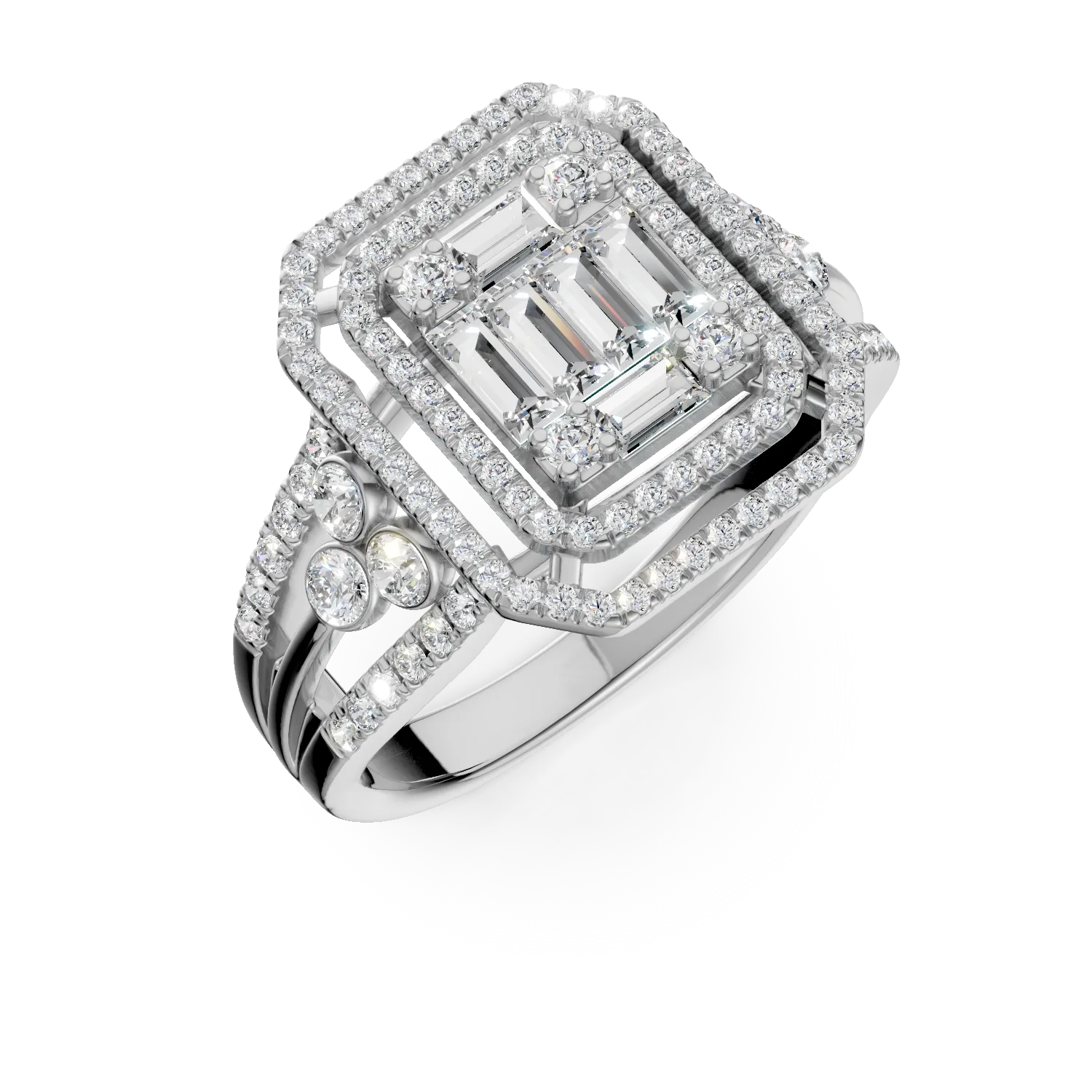 Inel din aur alb cu diamante microsetting baguette si rotunde de 0.7ct