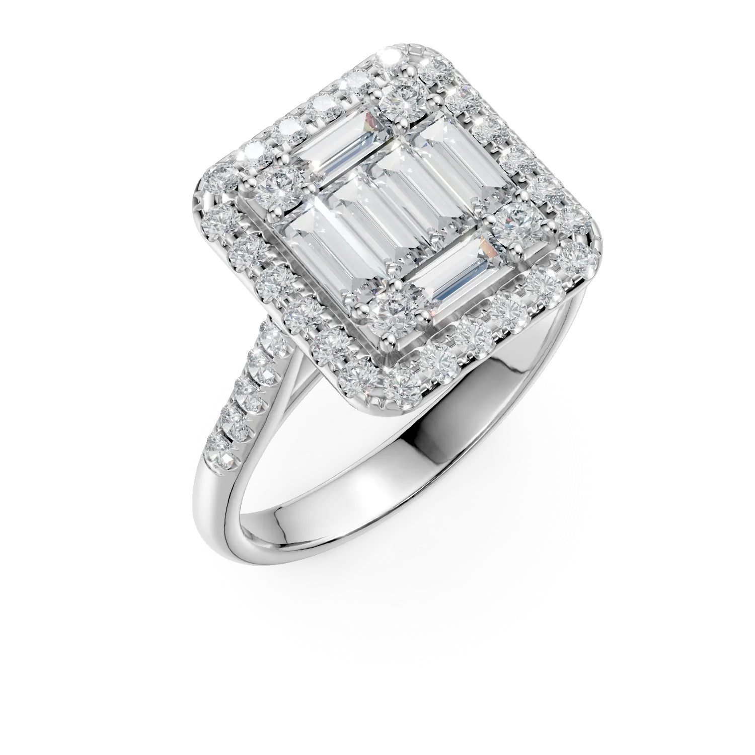 Inel din aur alb cu diamante microsetting baguette si rotunde de 1.3ct