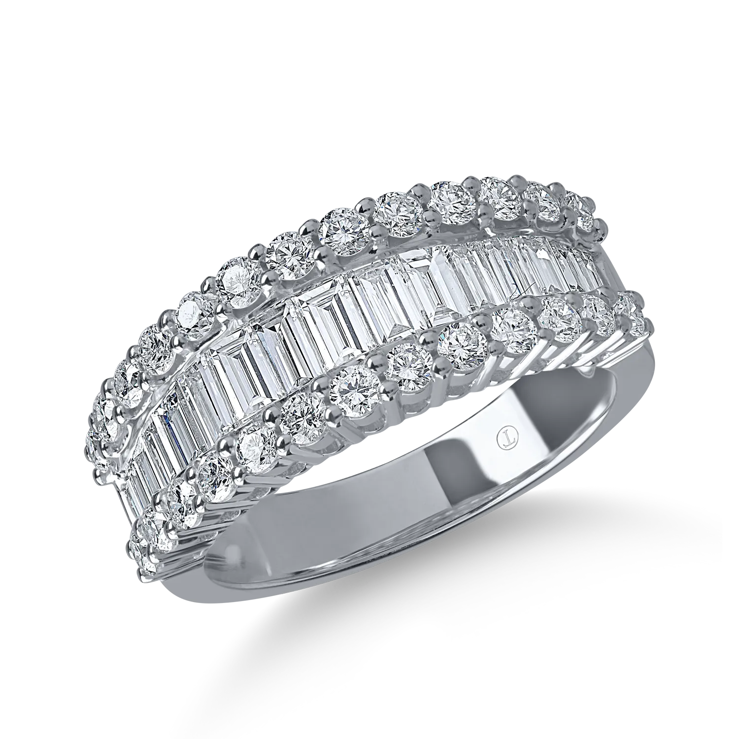 Inel din aur alb cu diamante microsetting baguette si rotunde de 1.7ct
