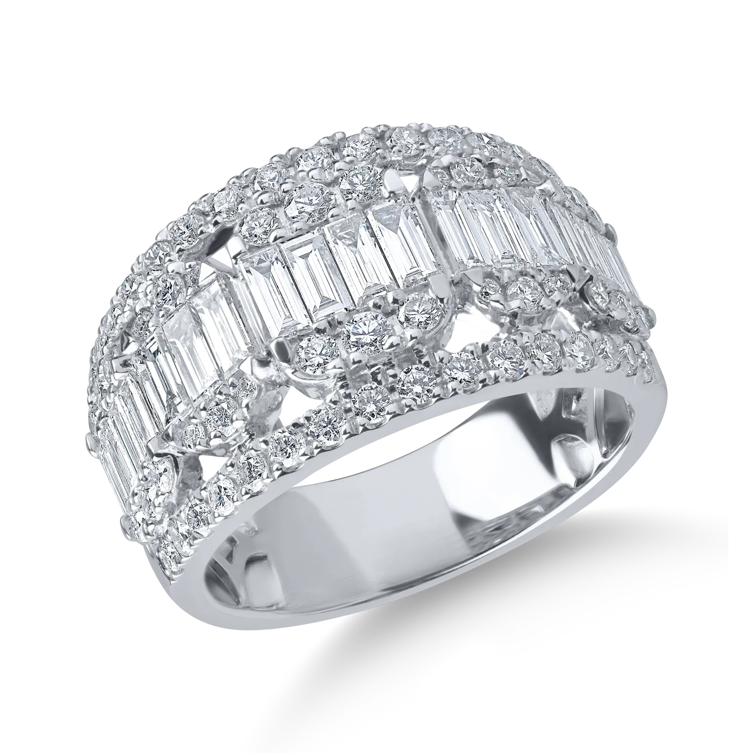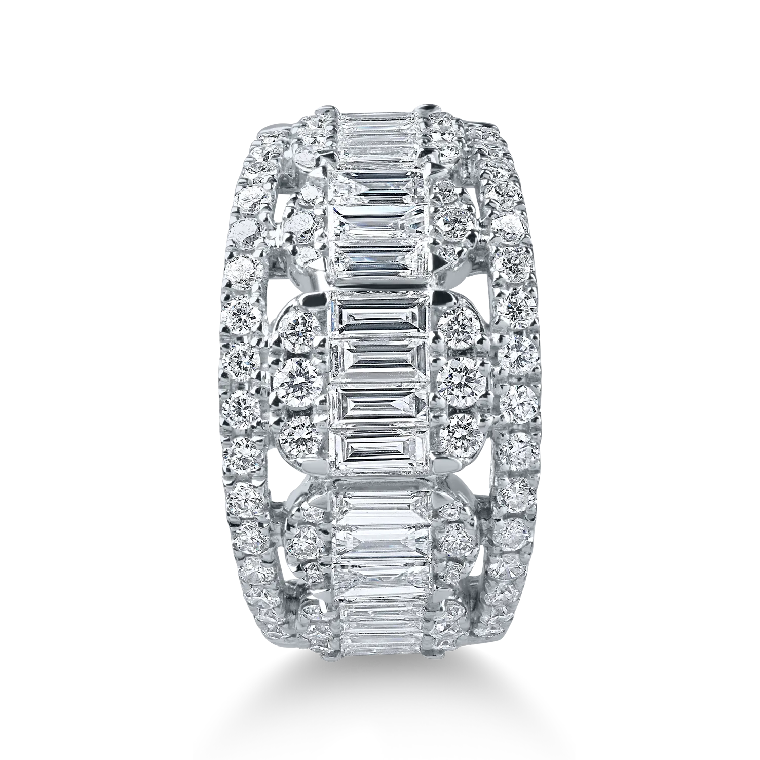 Inel din aur alb cu diamante microsetting baguette si rotunde de 1.9ct