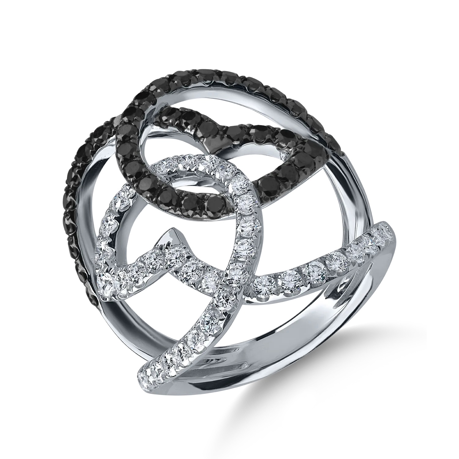 Inel din aur alb cu diamante negre de 0.8ct si diamante incolore de 0.7ct