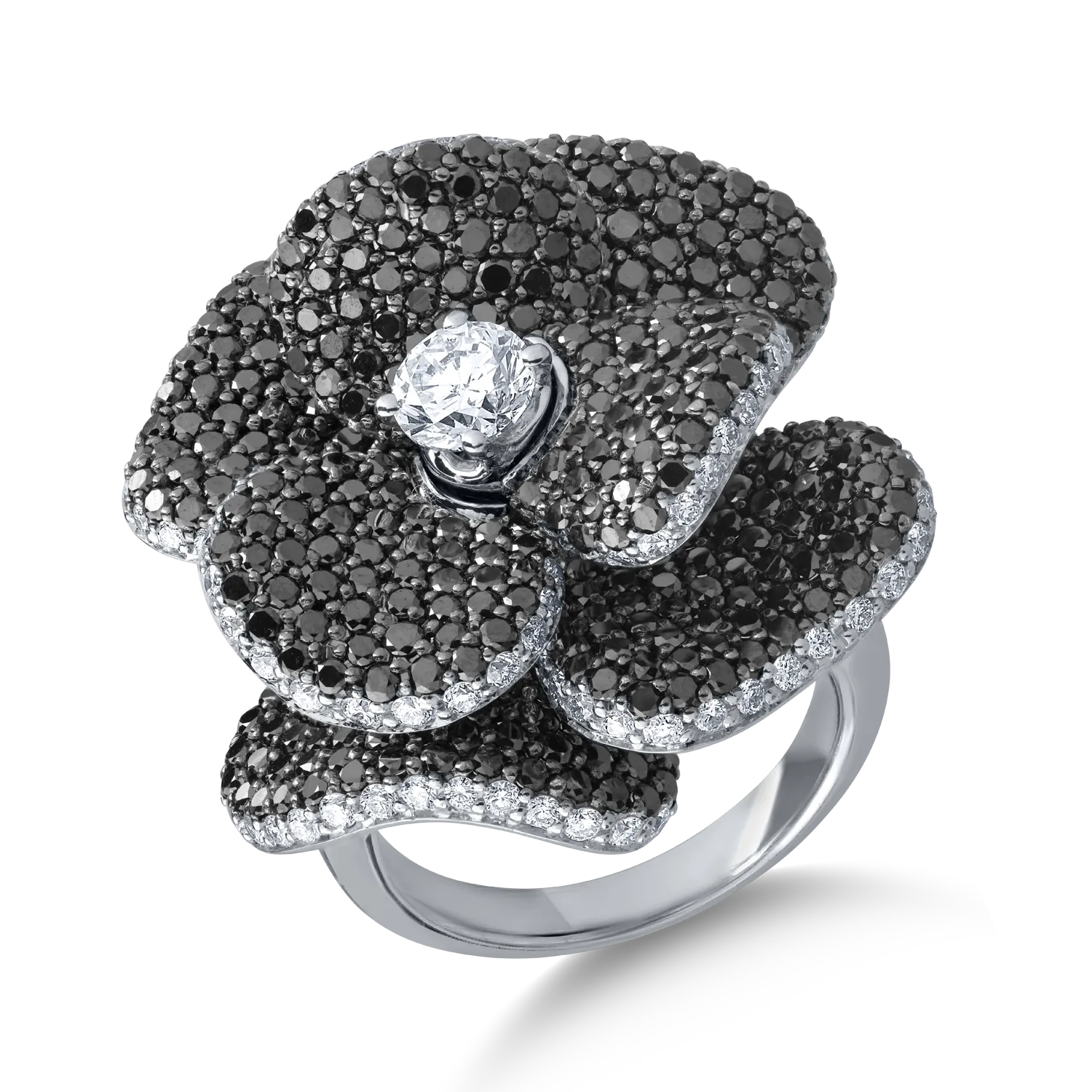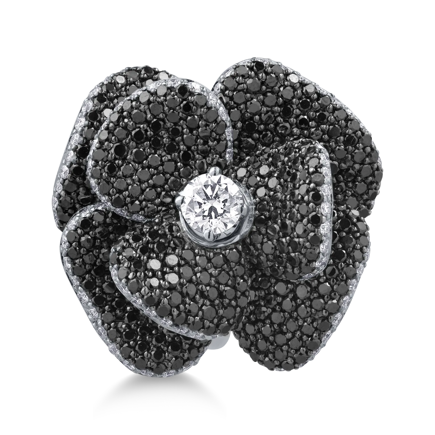 Inel din aur alb cu diamante negre de 4.83ct si diamante transparente de 2.04ct