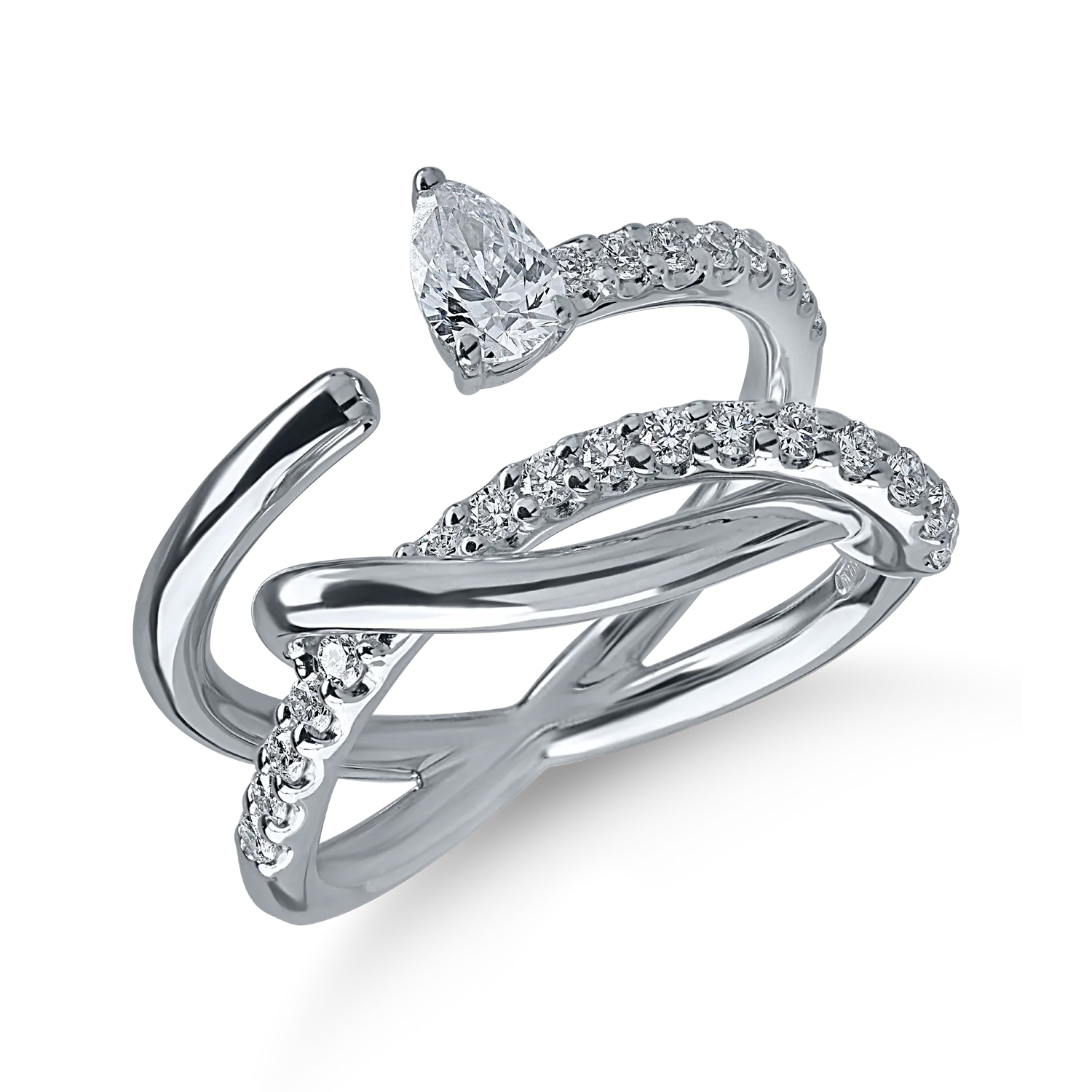 Inel din aur alb cu diamante pear si rotunde de 0.65ct