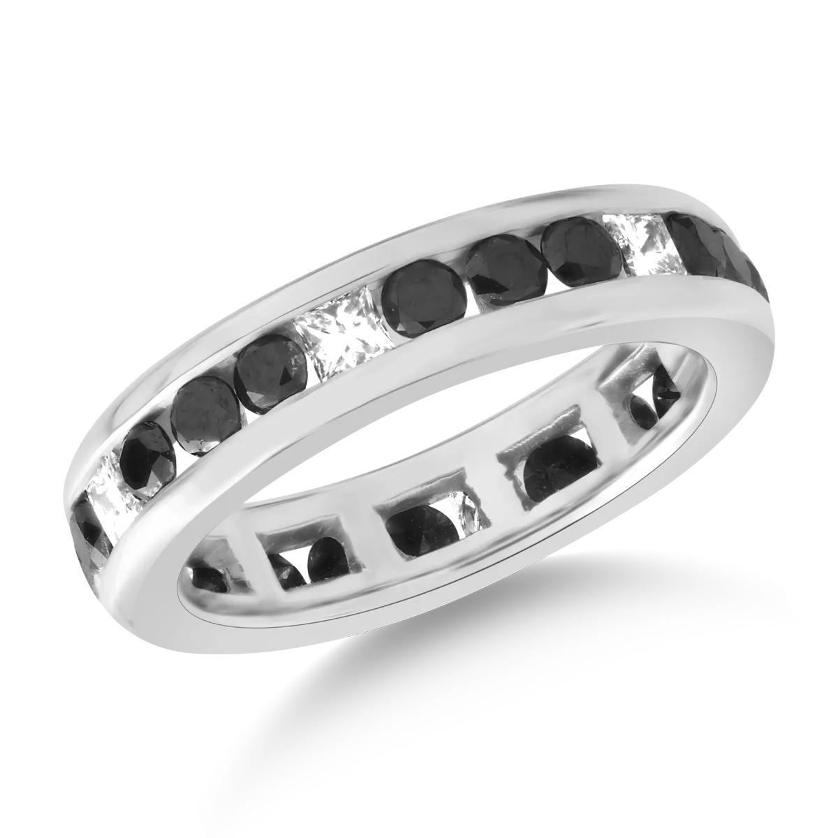 Inel din aur alb cu diamante princess de 0.5ct si diamante negre de 1.5ct