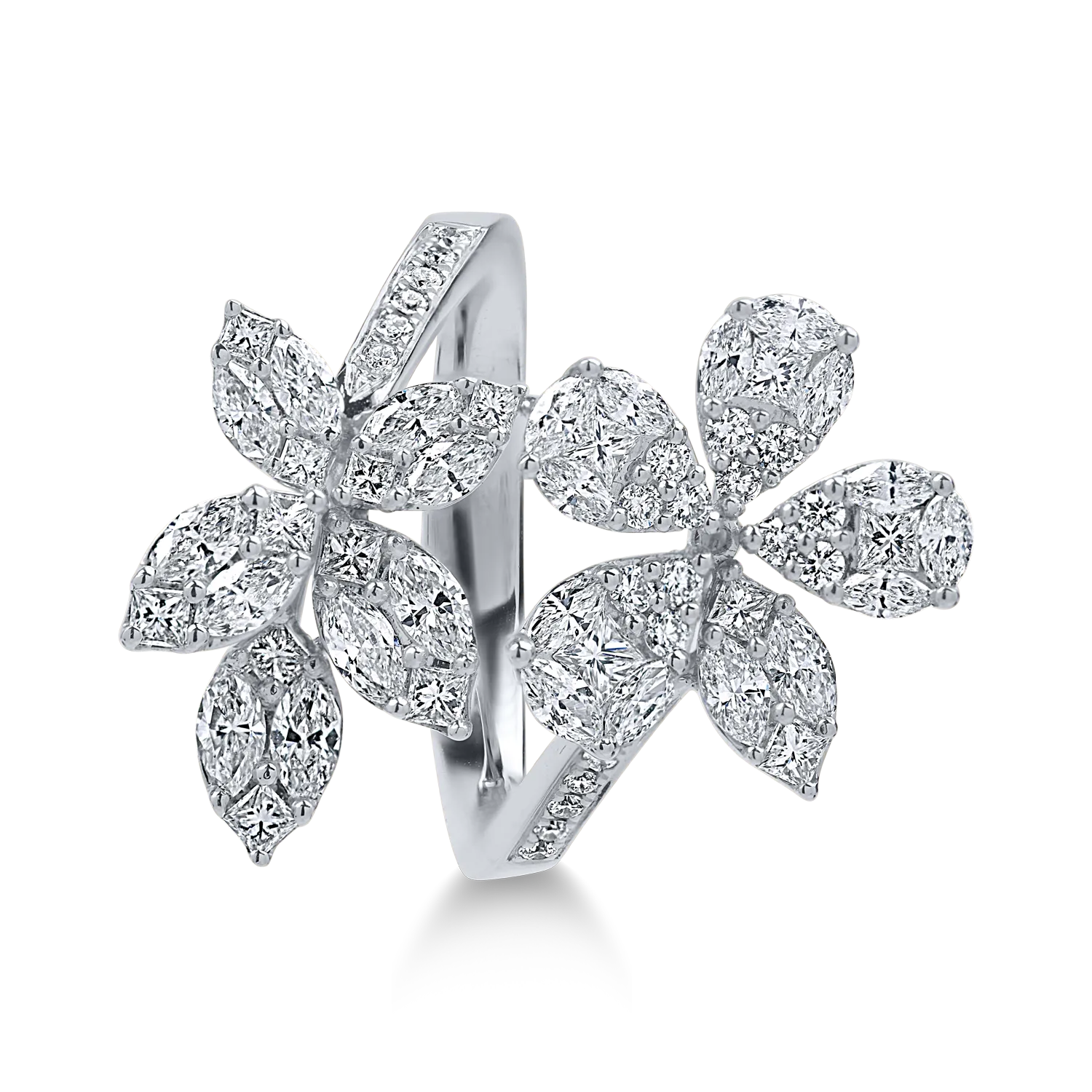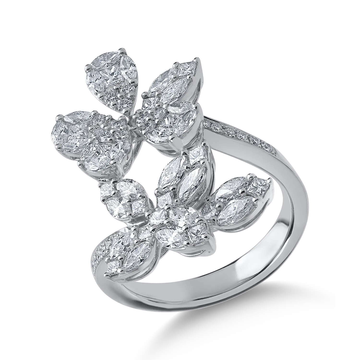 Inel din aur alb cu diamante princess, marquise si rotunde de 1.97ct