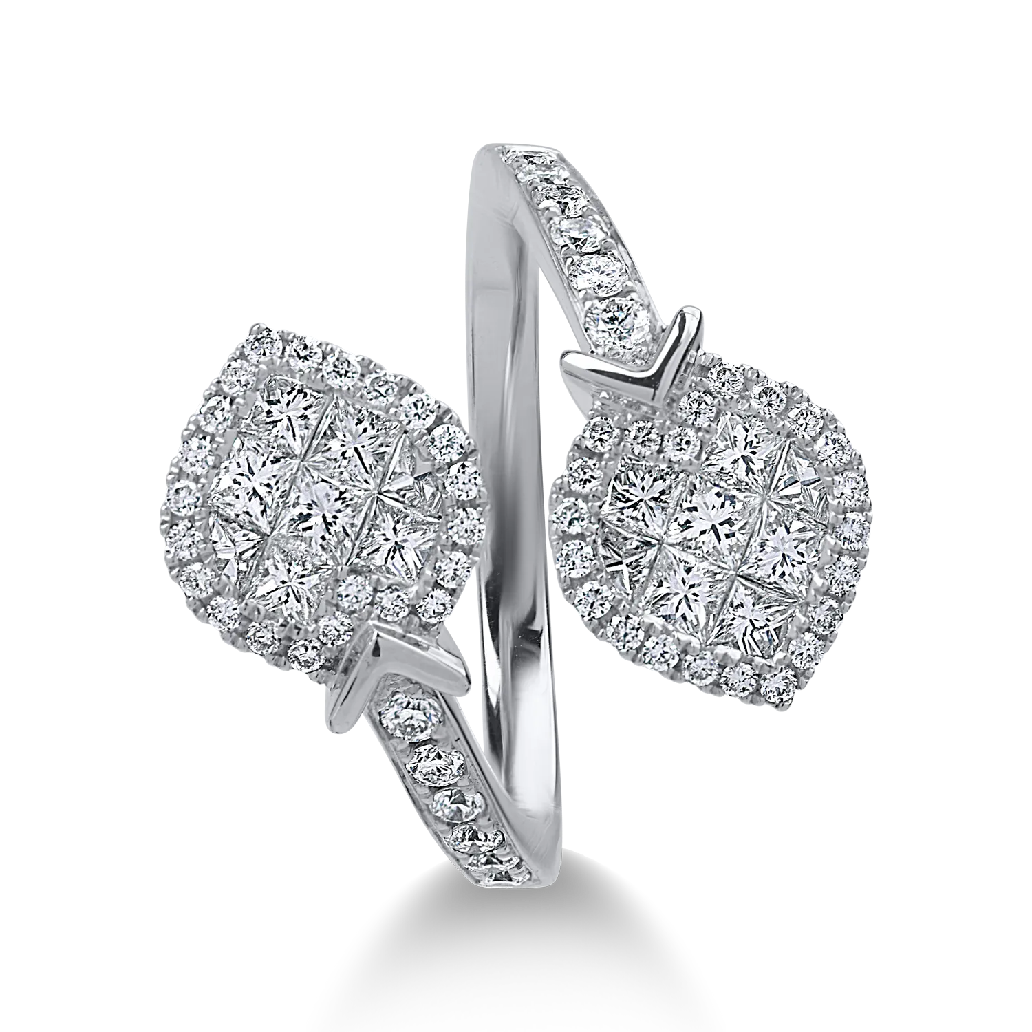 Inel din aur alb cu diamante princess si rotunde de 1.19ct