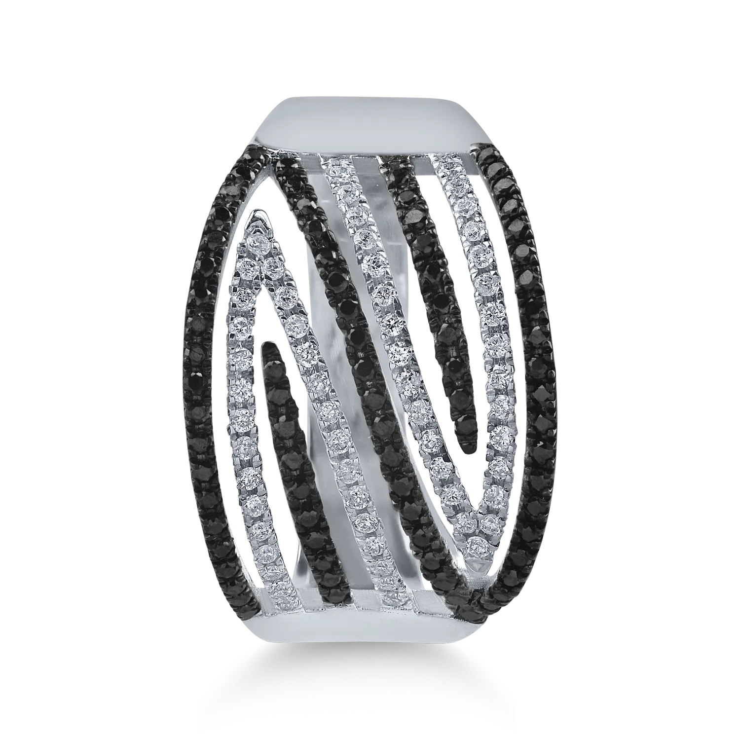 Inel din aur alb cu diamante transparente de 0.19ct si diamante negre de 0.24ct