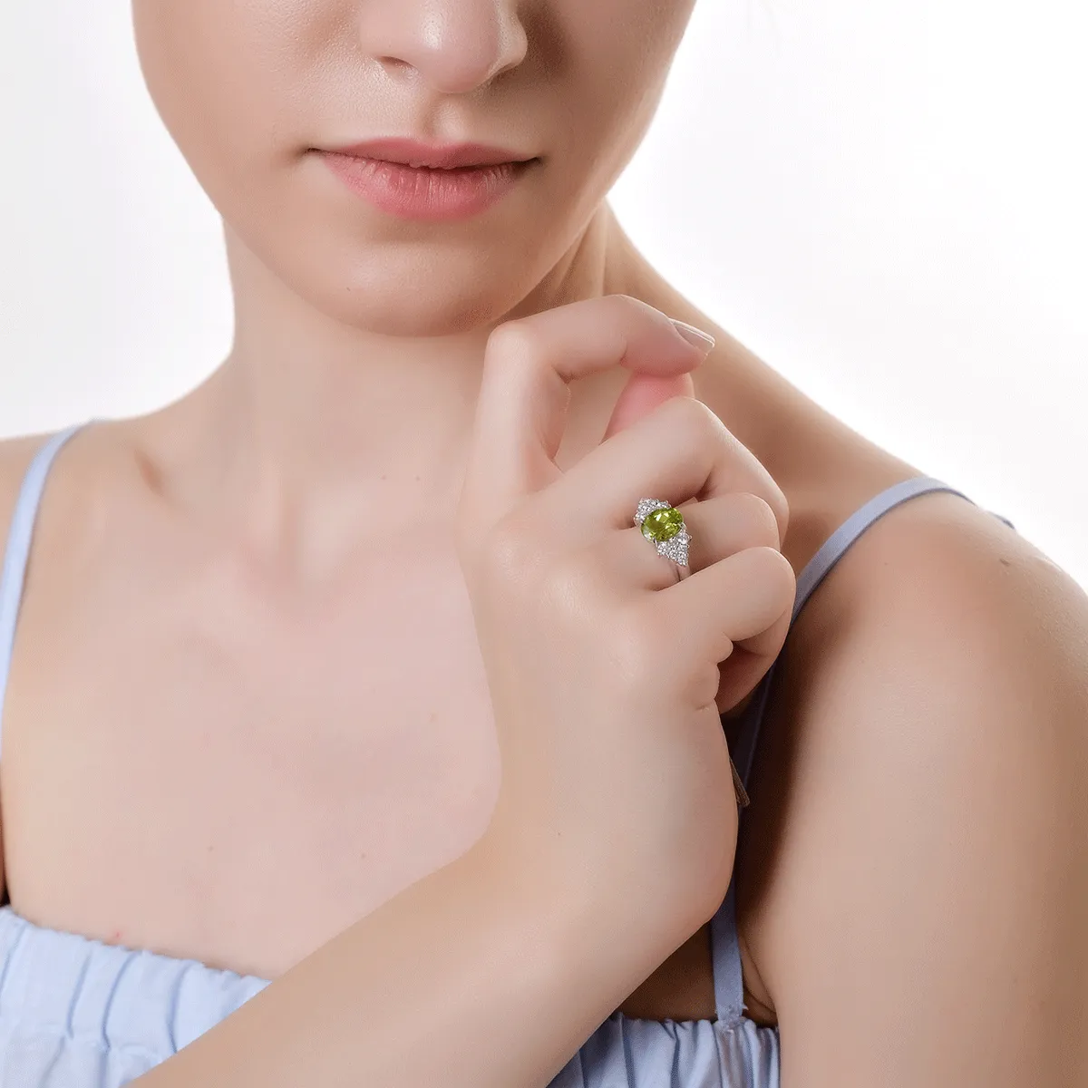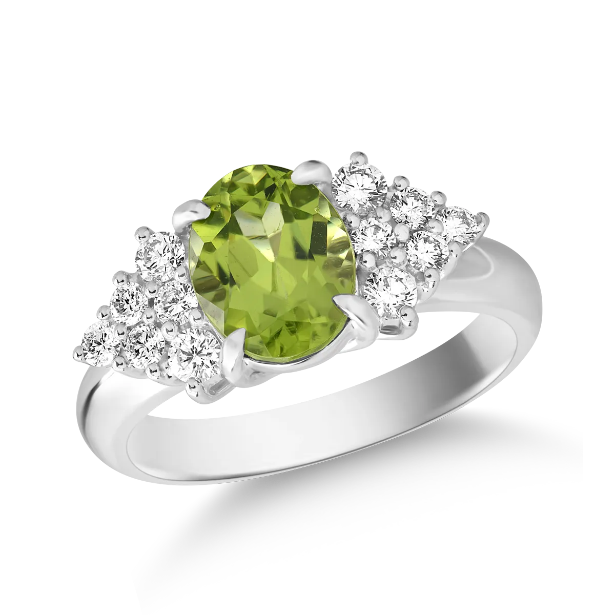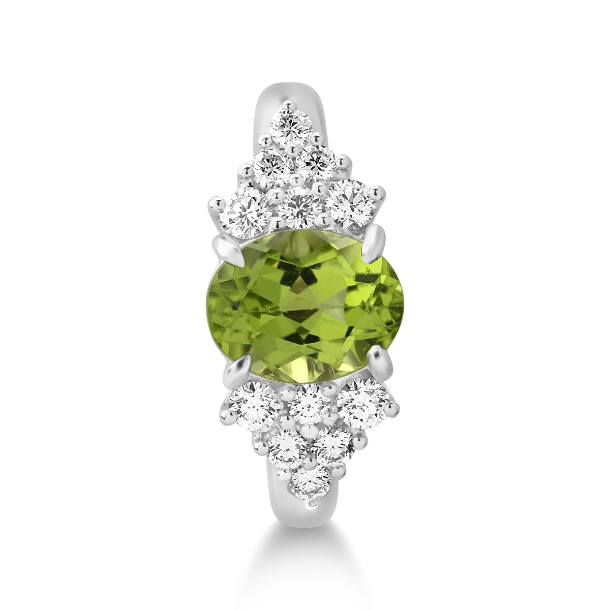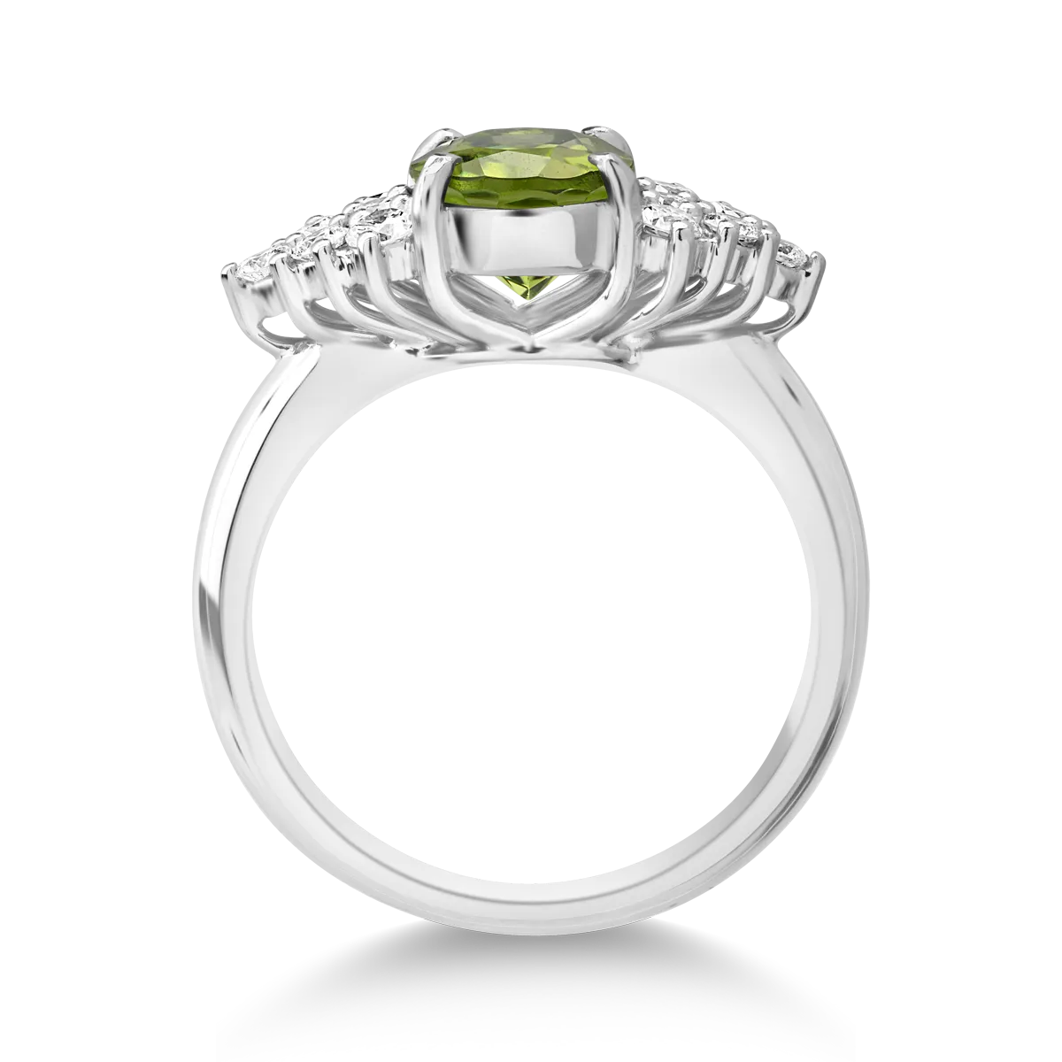 Inel din aur alb cu peridot oval de 1.9ct si diamante de 0.4ct