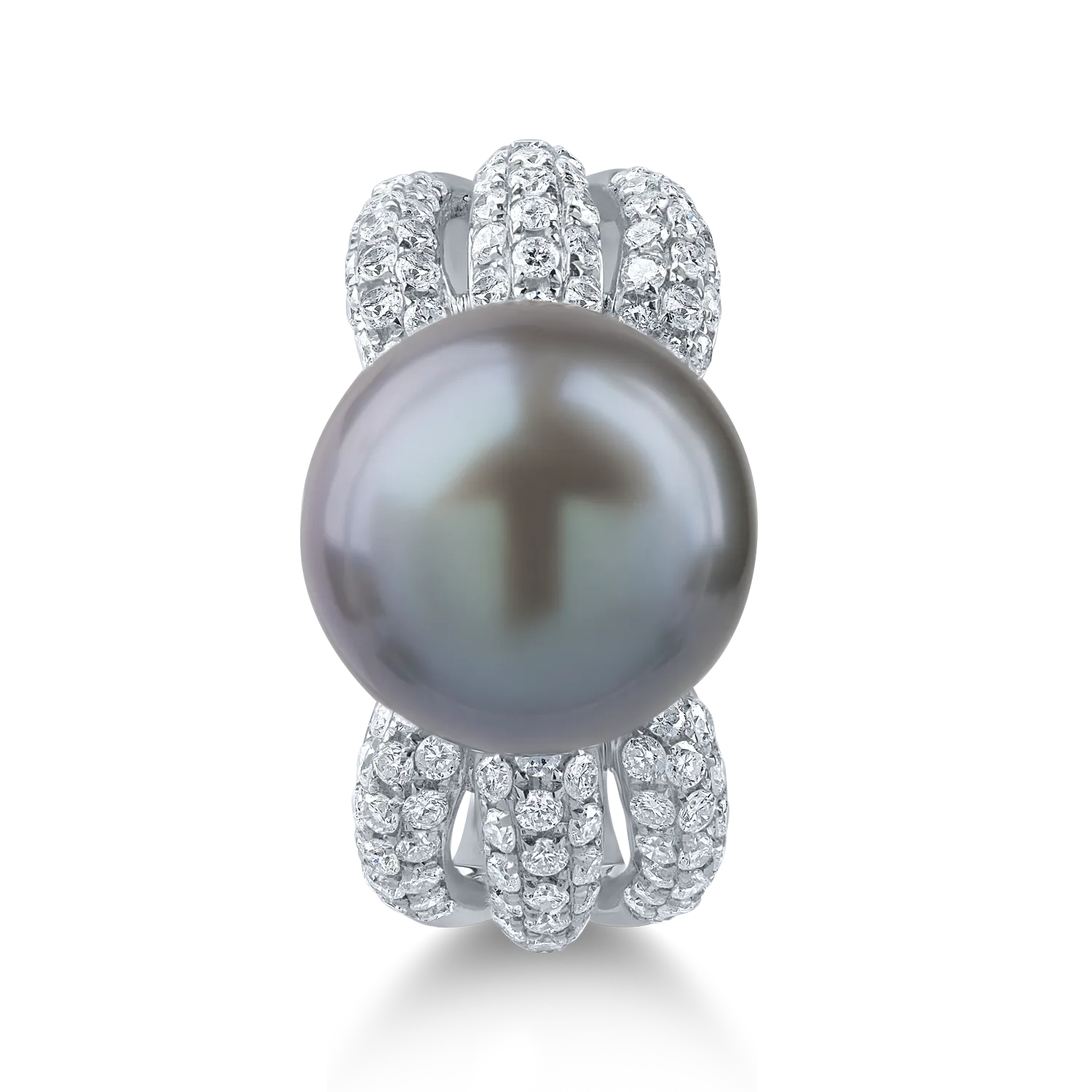 Inel din aur alb cu perla de cultura de 12ct si diamante de 0.8ct