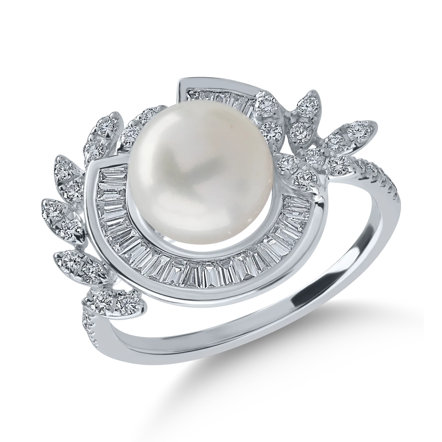 Inel din aur alb cu perle de cultura de 3.81ct si diamante de 0.44ct