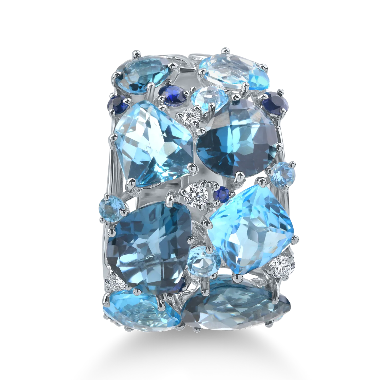 Feminitate si atitudine. Cu un design original, acest inel din aur alb cu pietre pretioase si semipretioase de 14.79ct te poarta intr-o calatorie unica, iti accentueaza farmecul si ofera o alura vibranta stilului tau. O piesa care va sublinia unicitatea outfit-urilor tale.