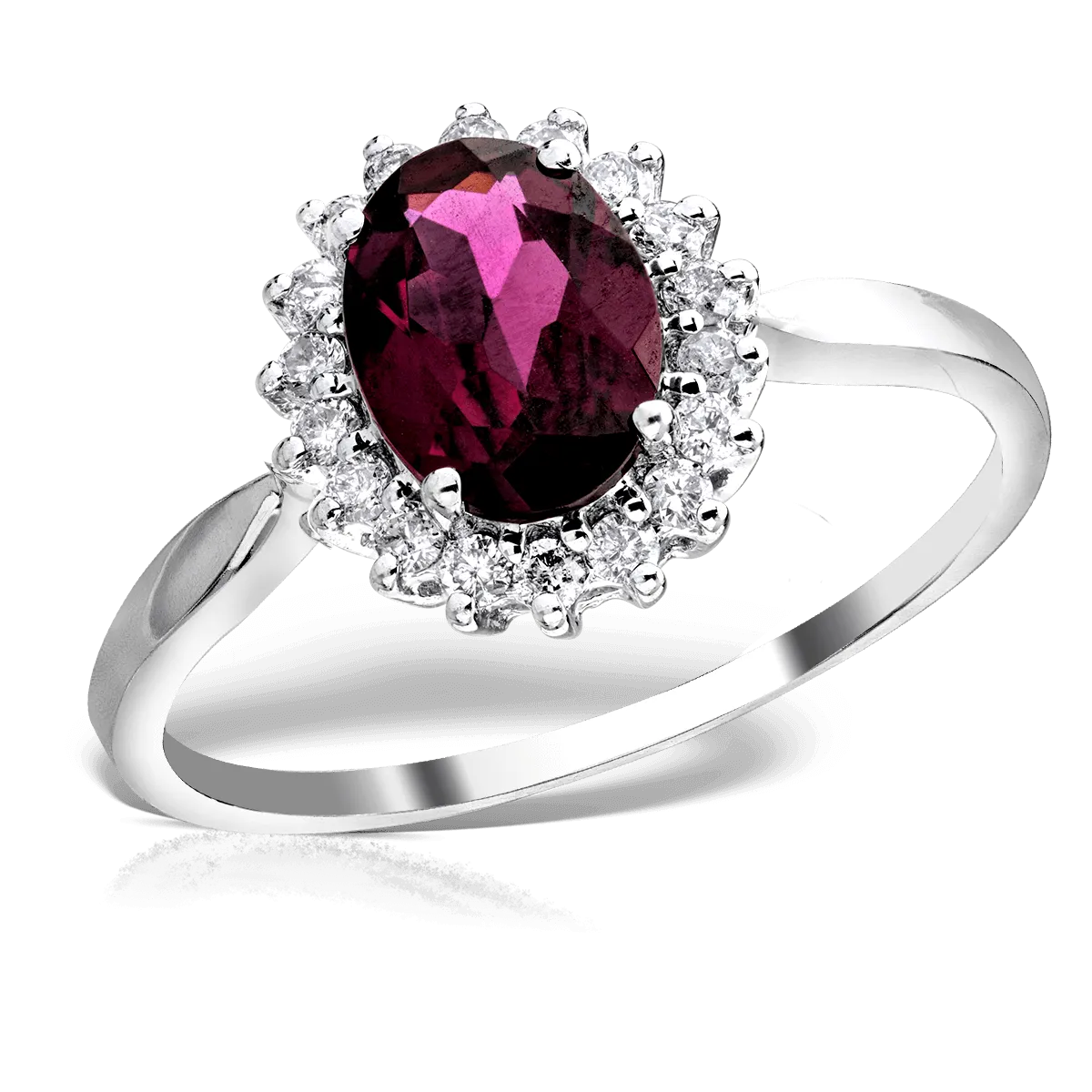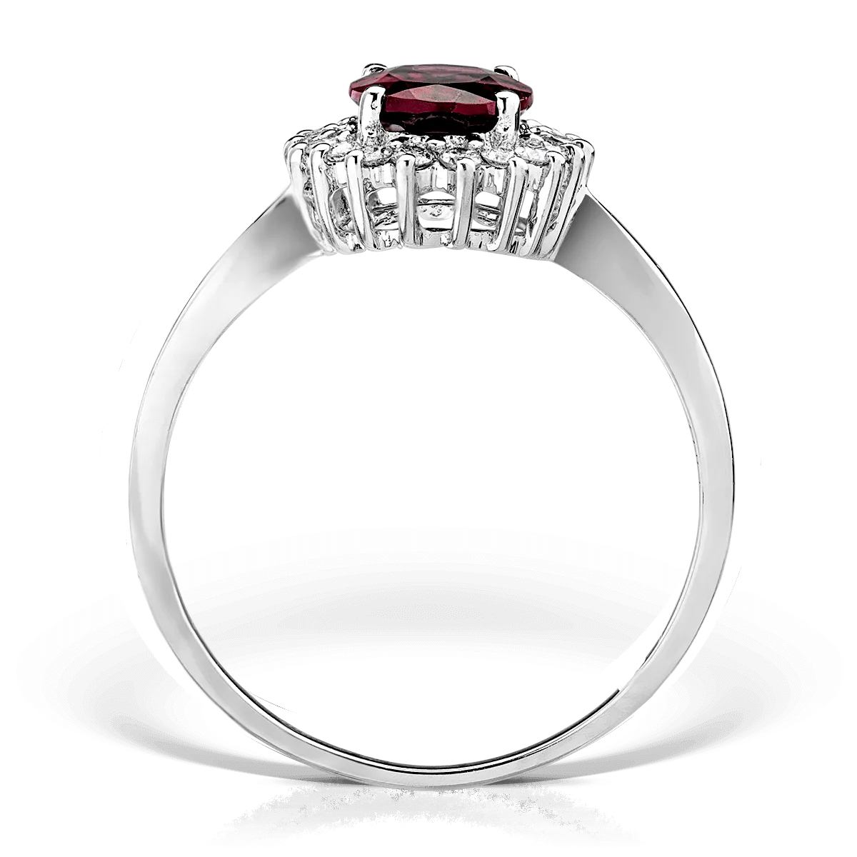 Inel din aur alb cu rodolit oval de 1.2ct si diamante de 0.2ct