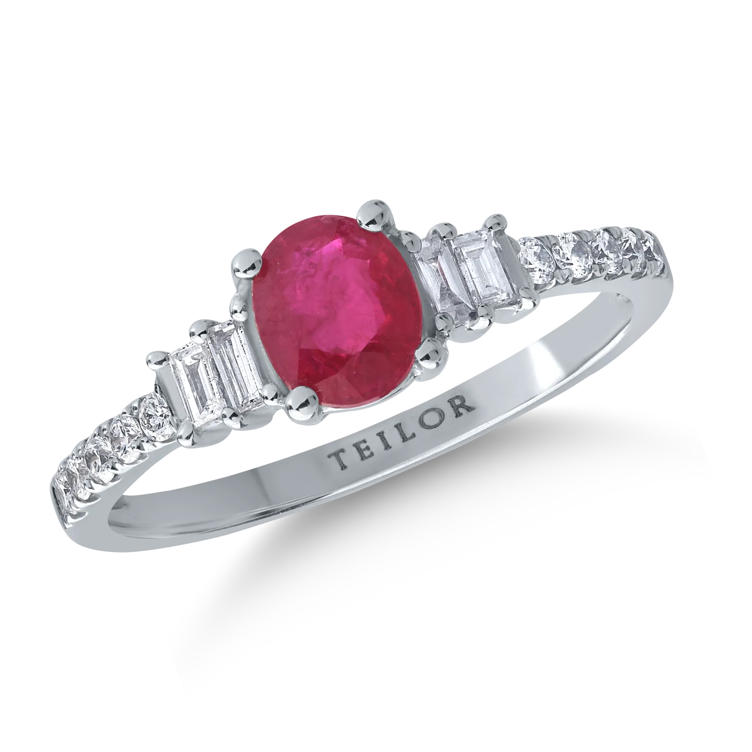 Inel din aur alb cu rubin de 0.75ct si diamante de 0.25ct