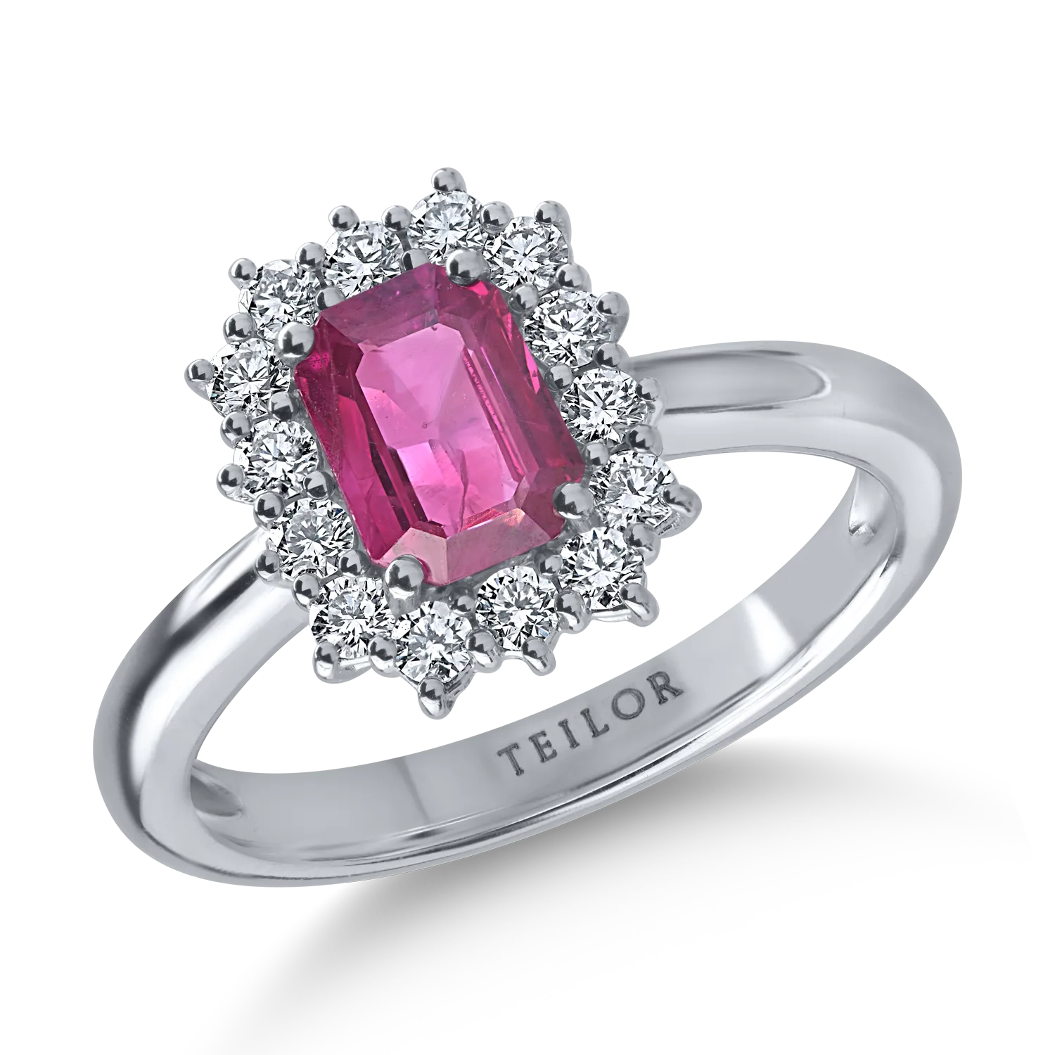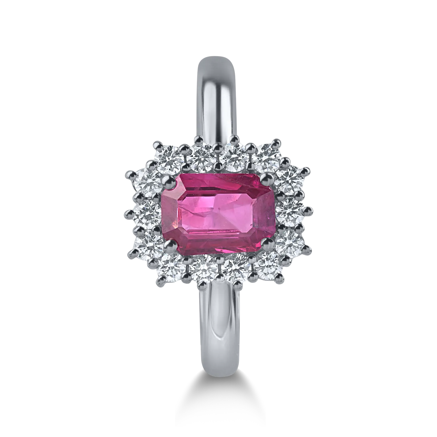 Inel din aur alb cu rubin octogonal de 1ct si diamante de 0.3ct