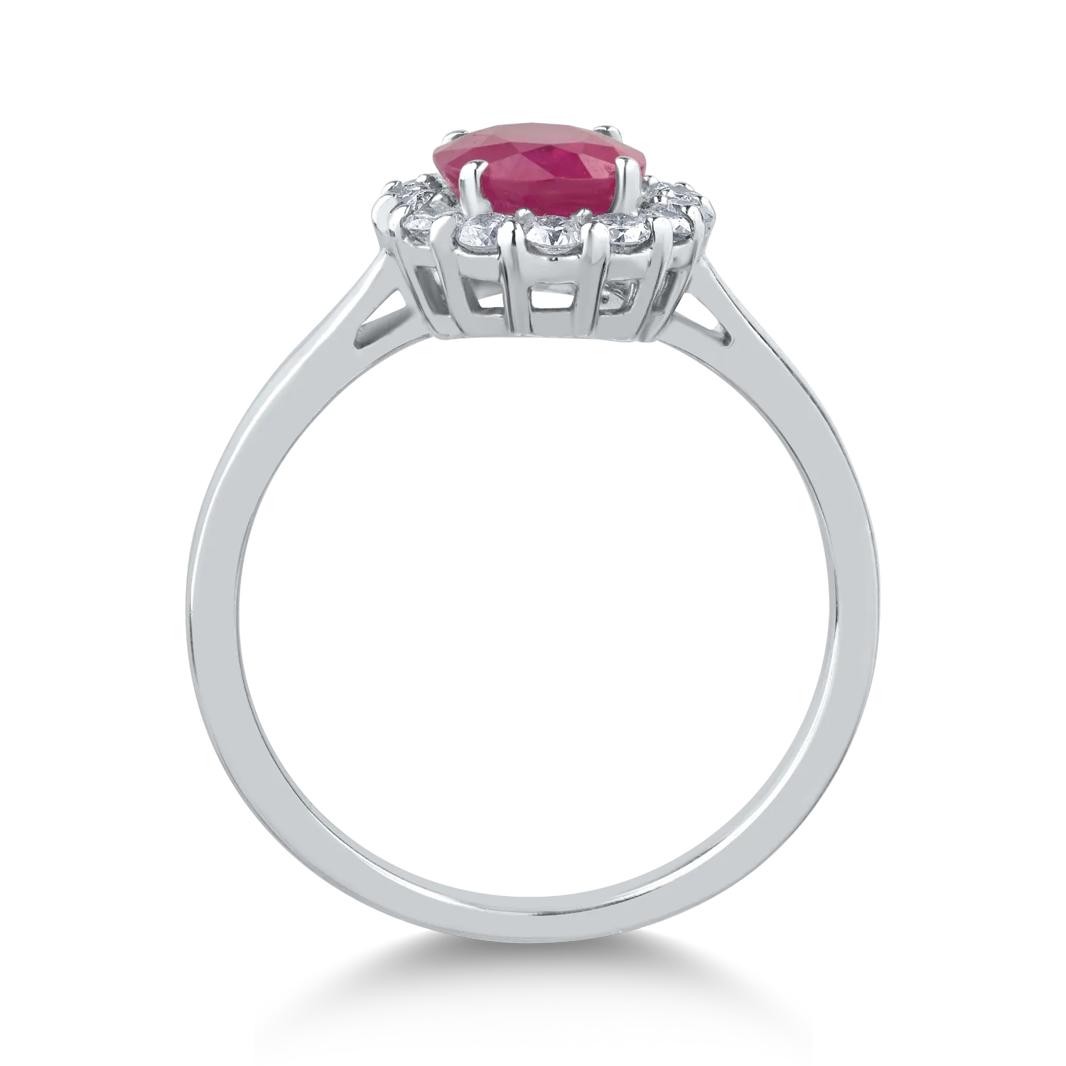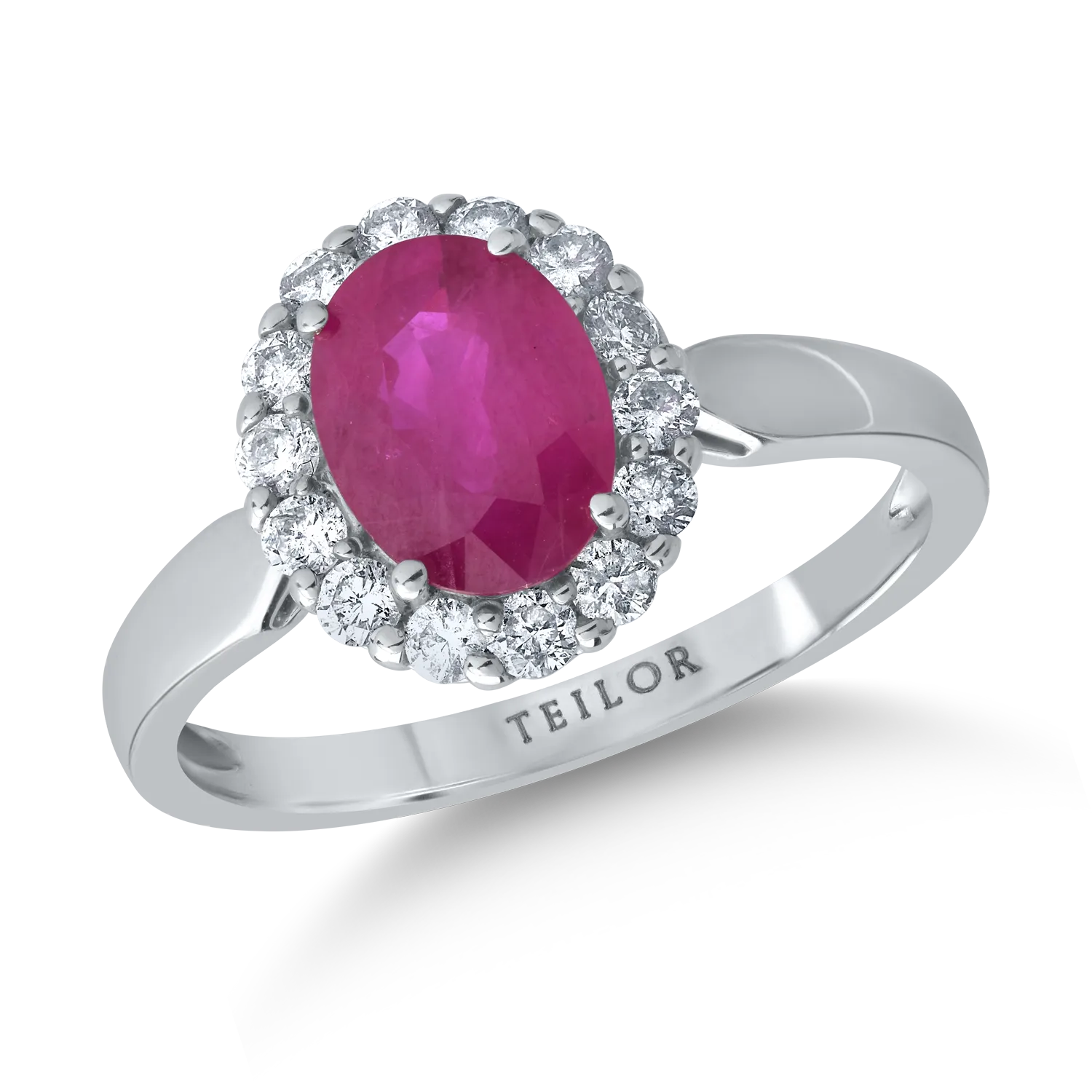 Inel din aur alb cu rubin oval de 1.6ct si diamante de 0.3ct