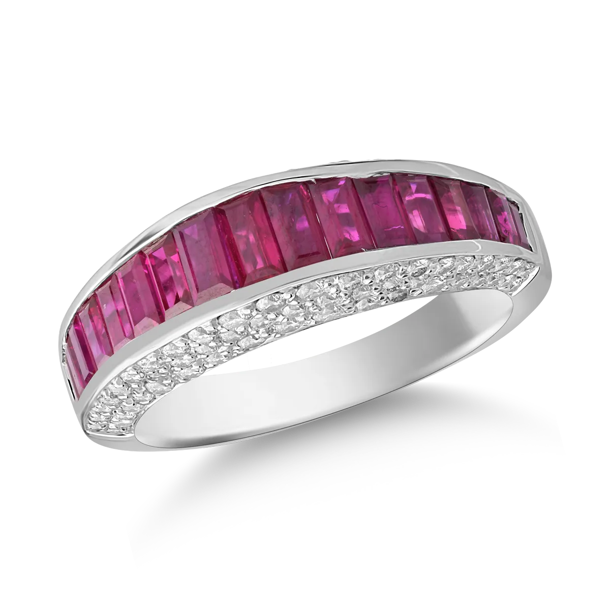 Inel din aur alb cu rubine baguette de 1.7ct si diamante de 0.8ct