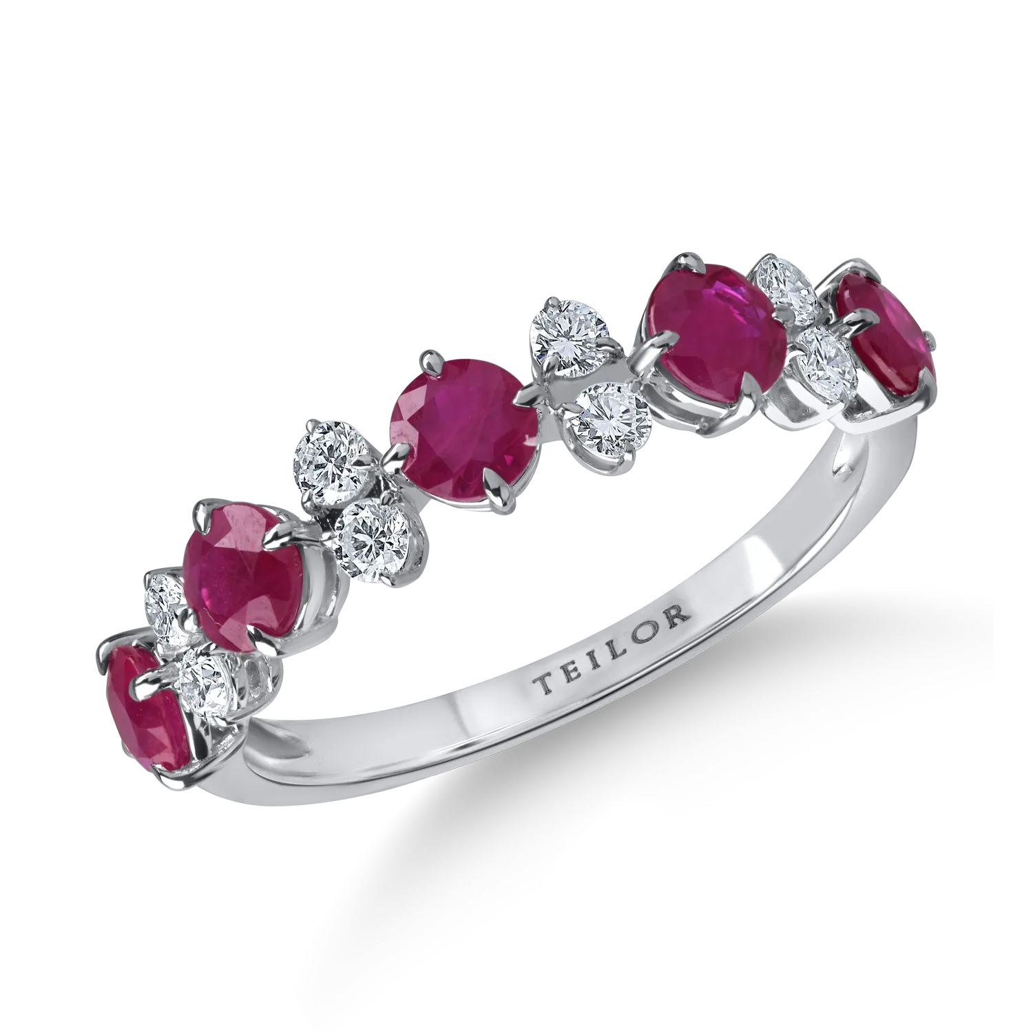 Inel din aur alb cu rubine de 1.1ct si diamante microsetting de 0.2ct
