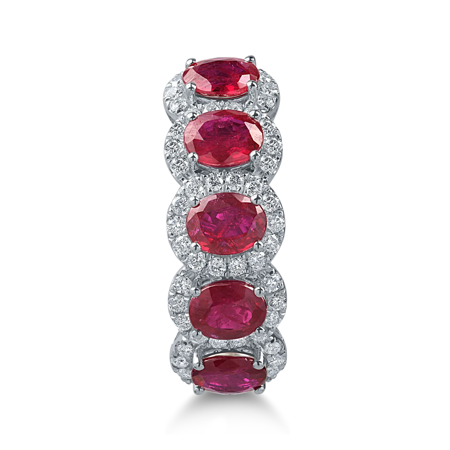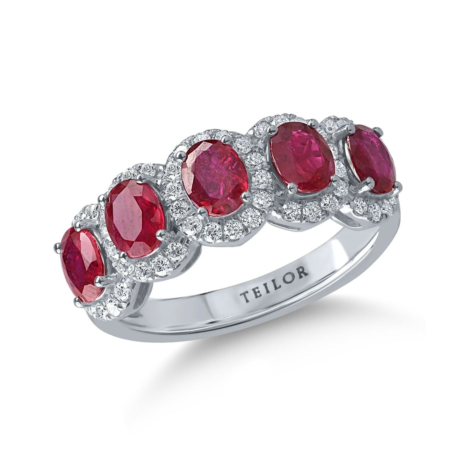 Inel din aur alb cu rubine ovale de 1.8ct si diamante de 0.4ct