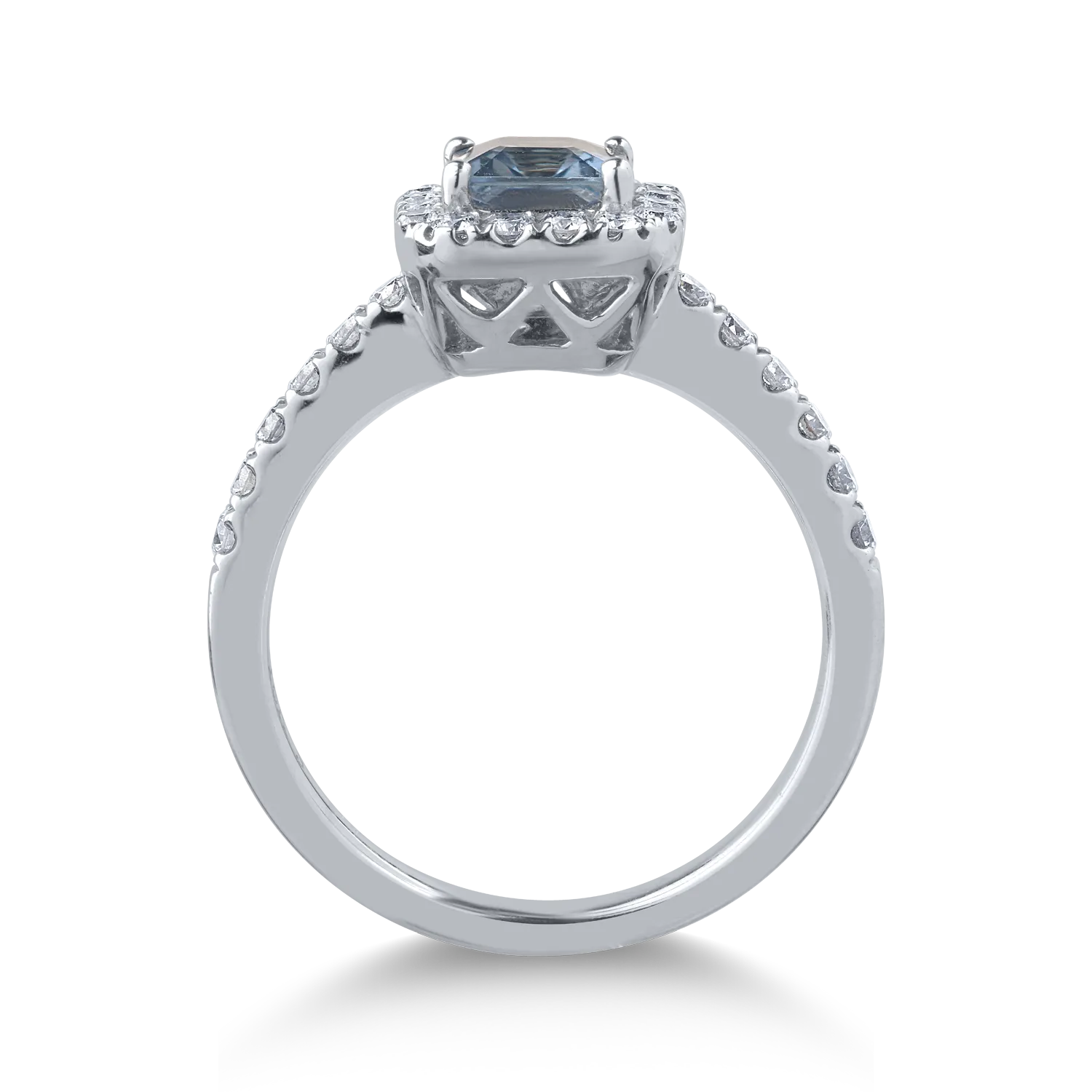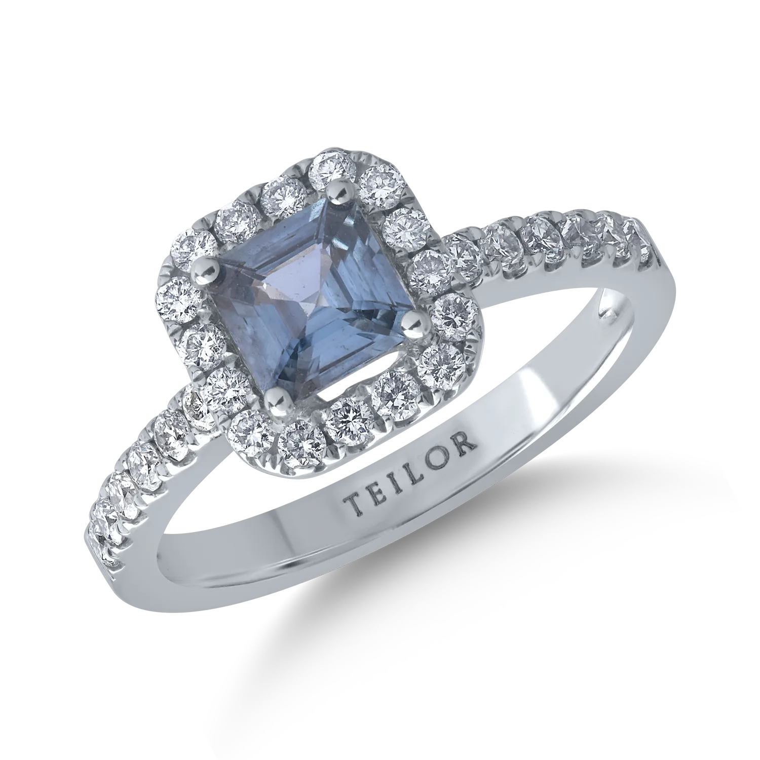 Inel din aur alb cu safir cushion de 0.7ct si diamante de 0.4ct
