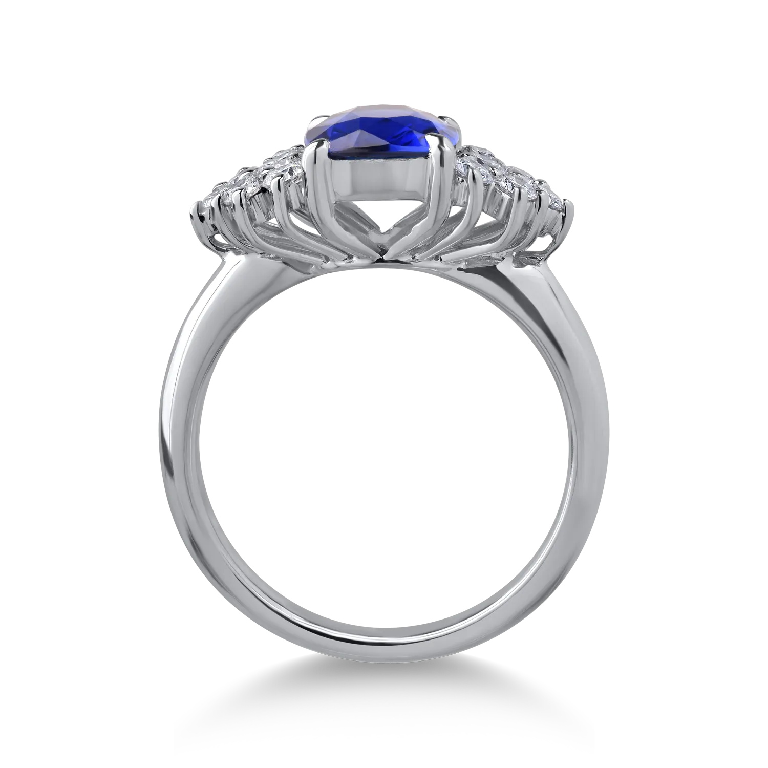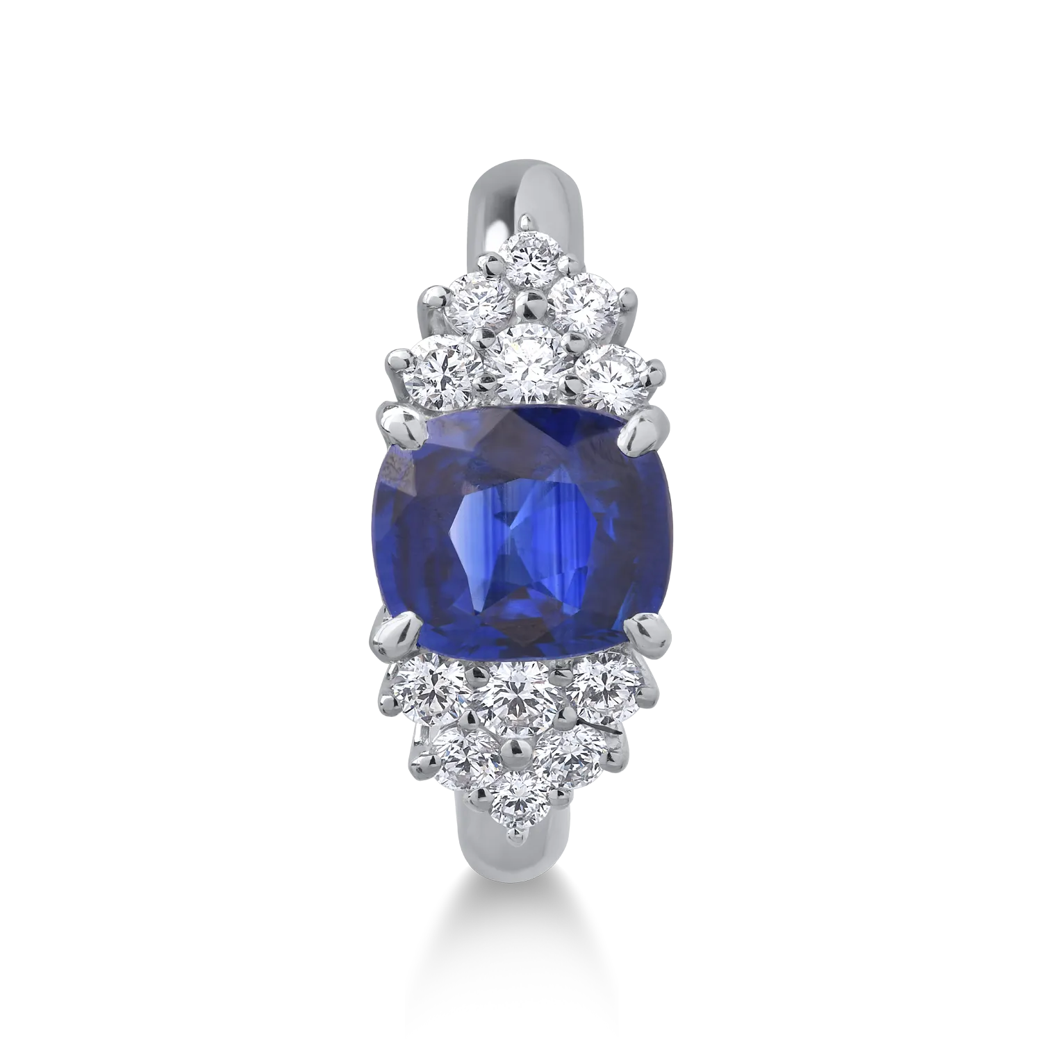 Inel din aur alb cu safir cushion de 2ct si diamante de 0.4ct