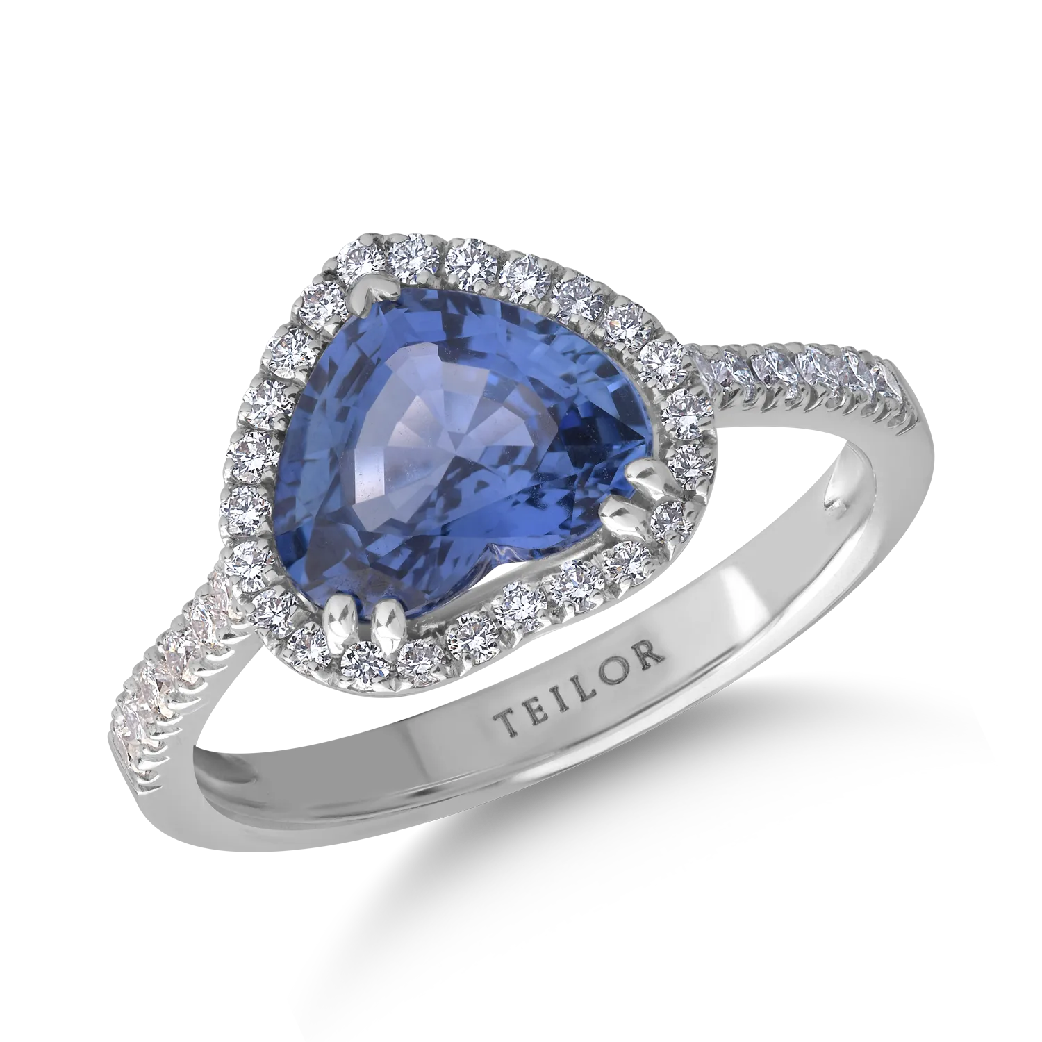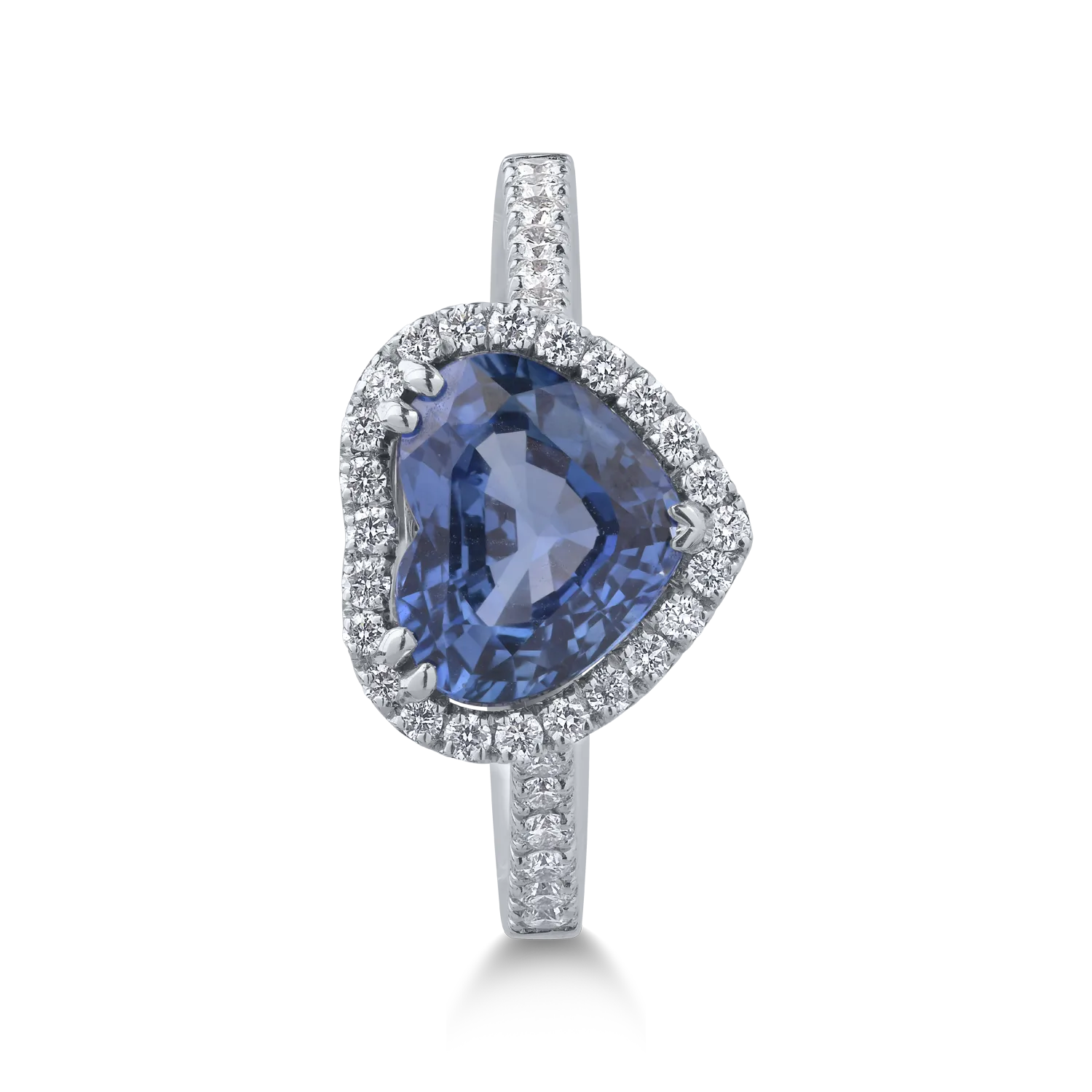Inel din aur alb cu safir heart de 2.09ct si diamante de 0.3ct