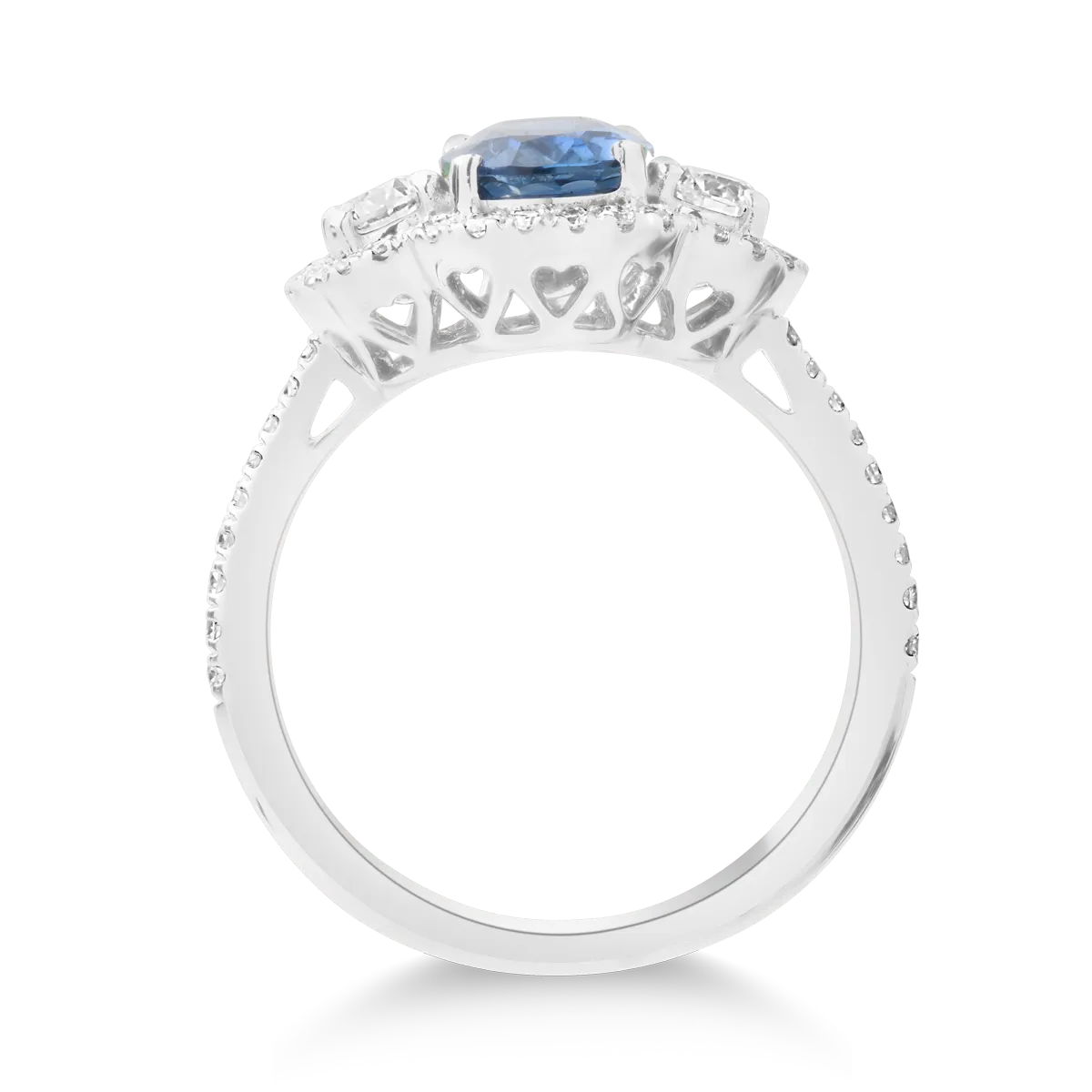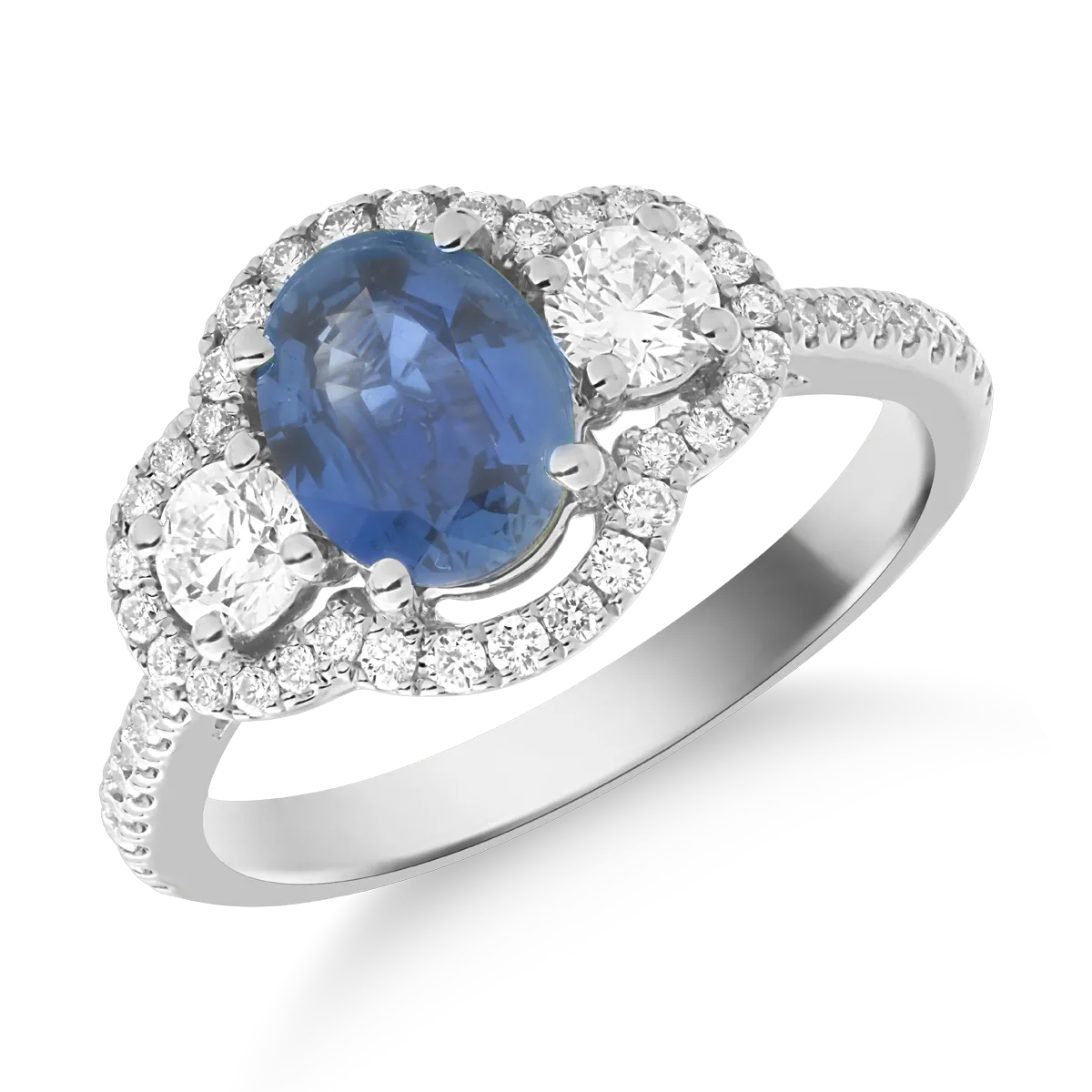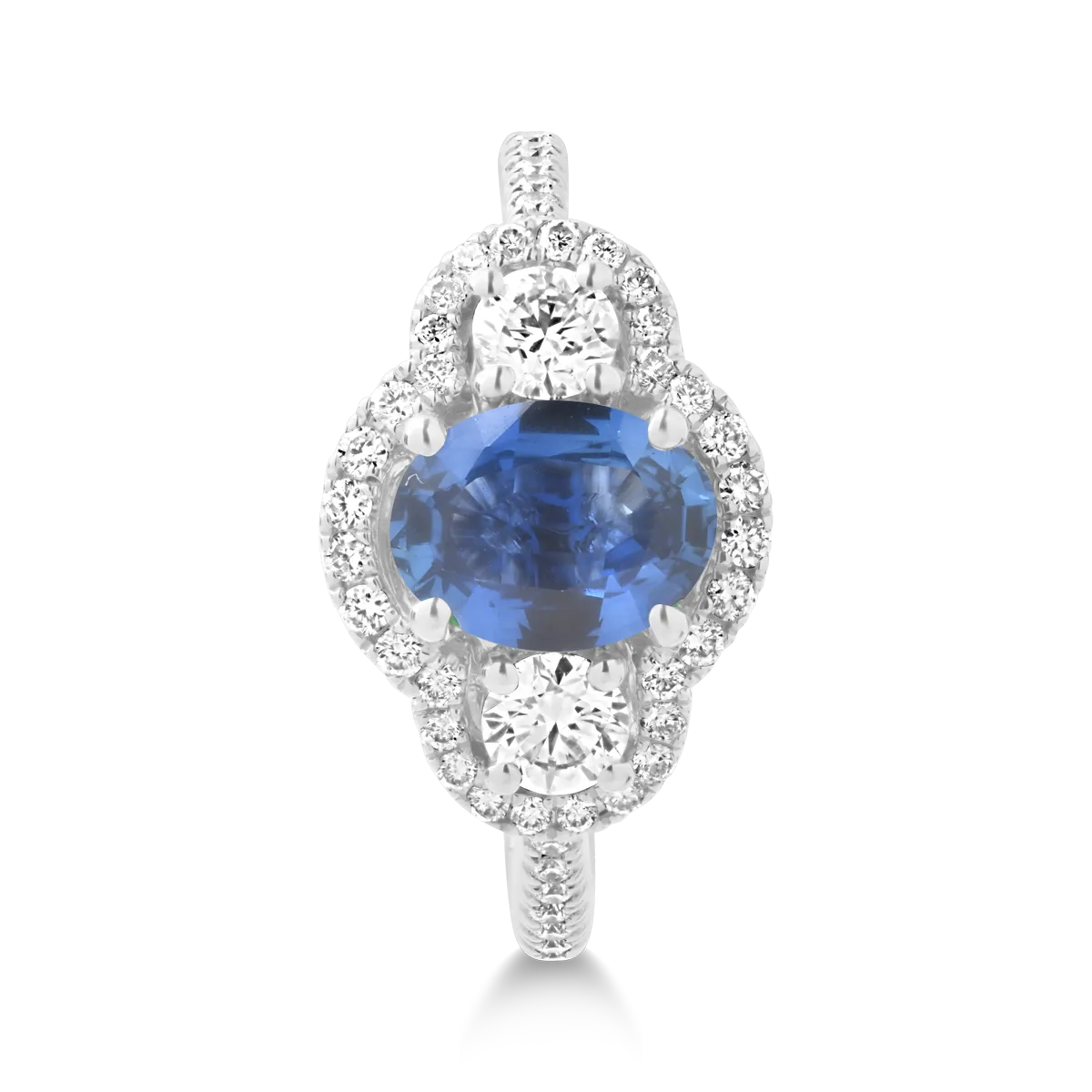 Inel din aur alb cu safir oval de 1.3ct si diamante de 0.6ct