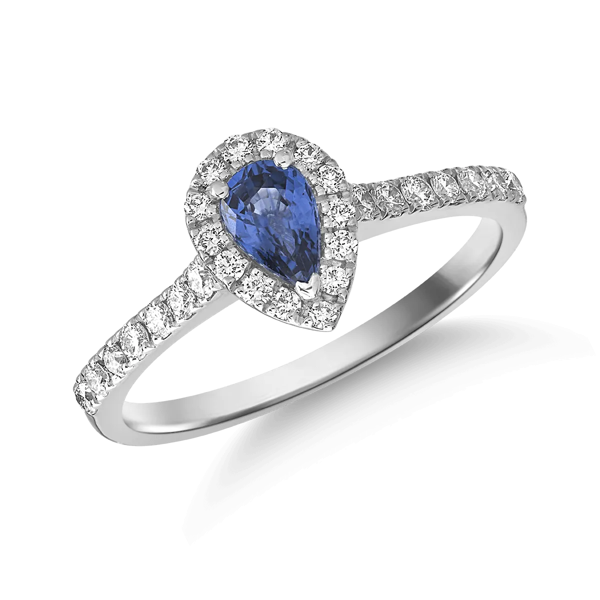 Inel din aur alb cu safir pear de 0.5ct si diamante de 0.3ct