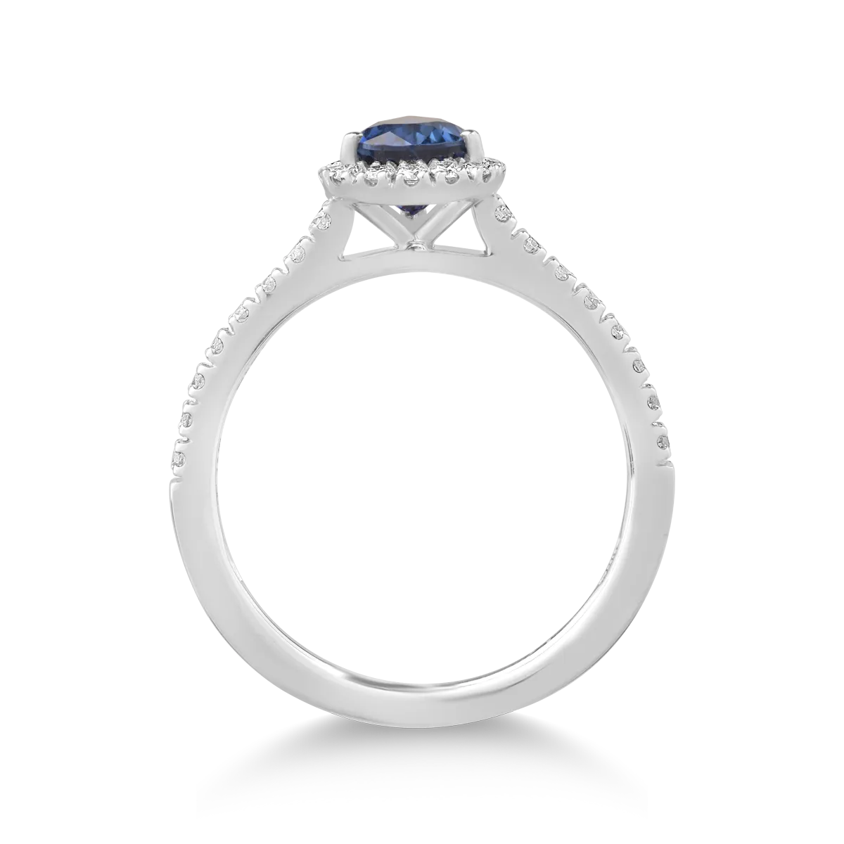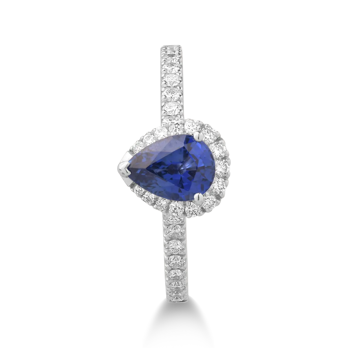 Inel din aur alb cu safir pear de 1.07ct si diamante de 0.3ct