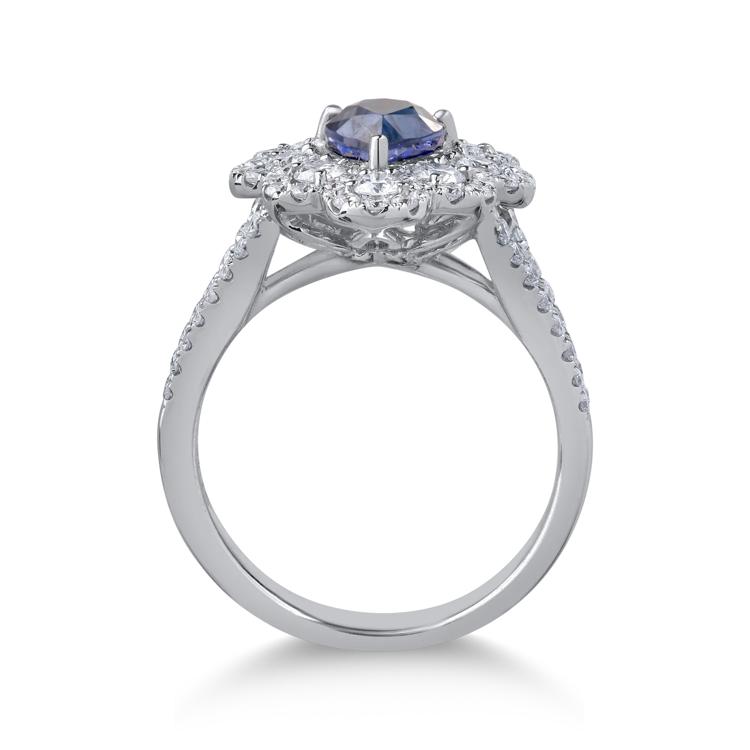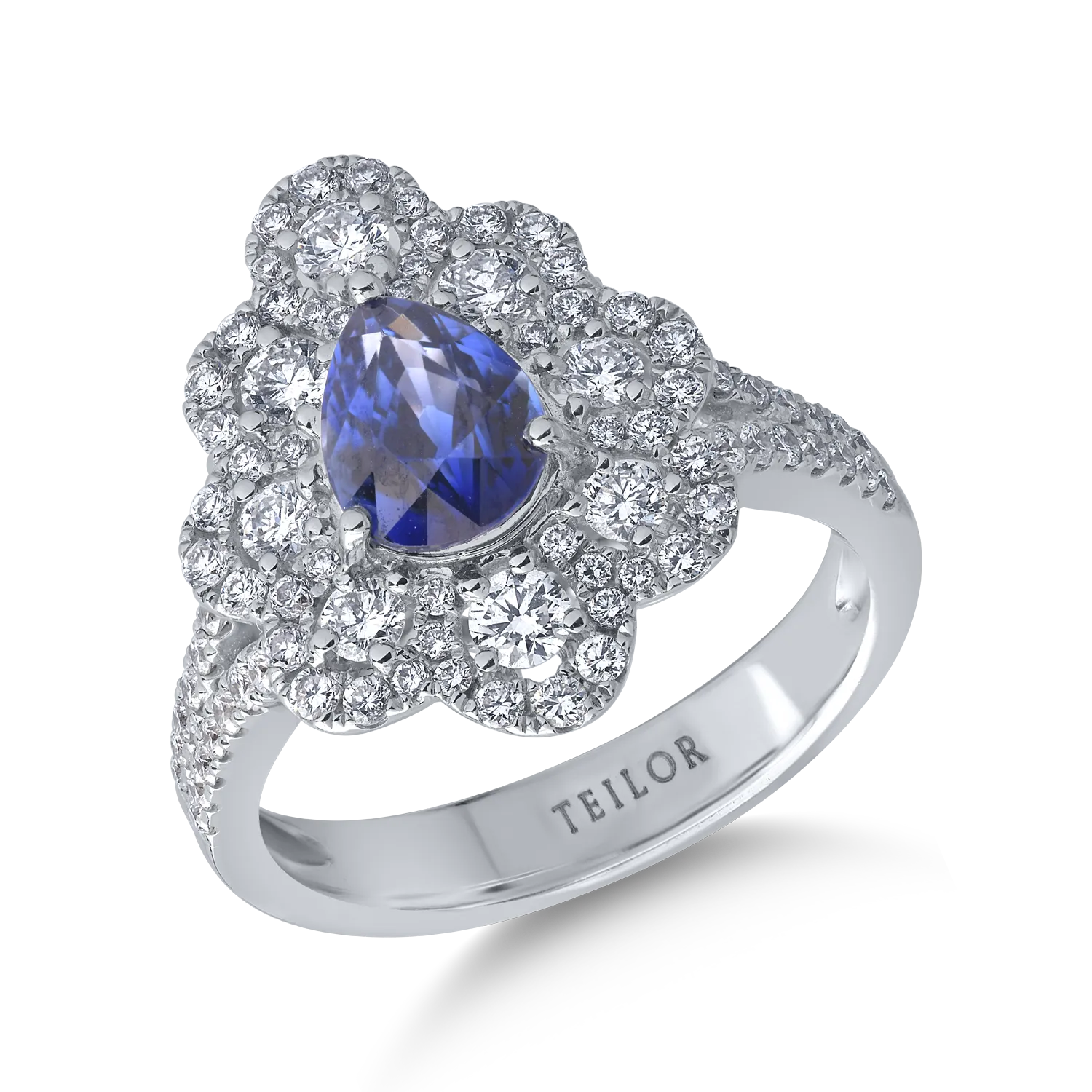 Inel din aur alb cu safir pear de 1.4ct si diamante de 0.9ct