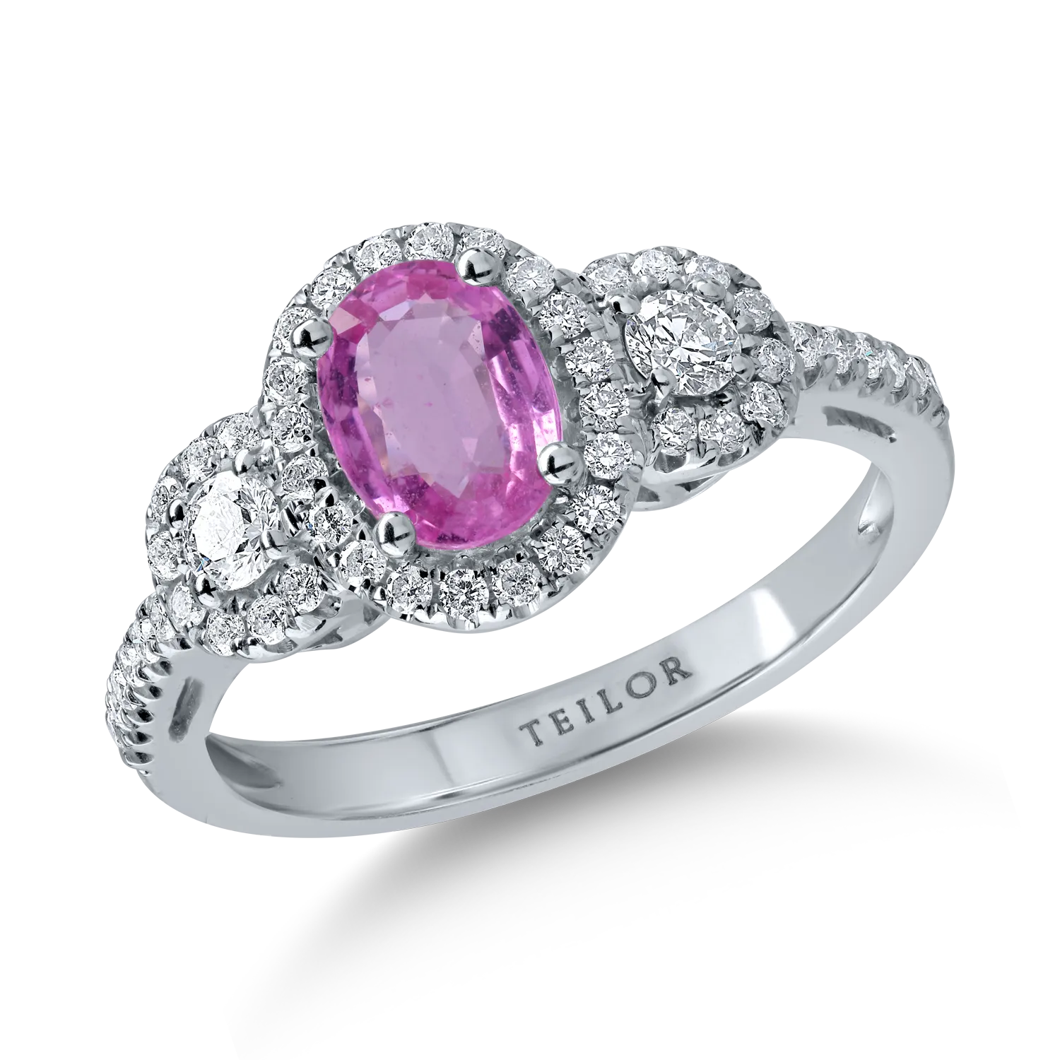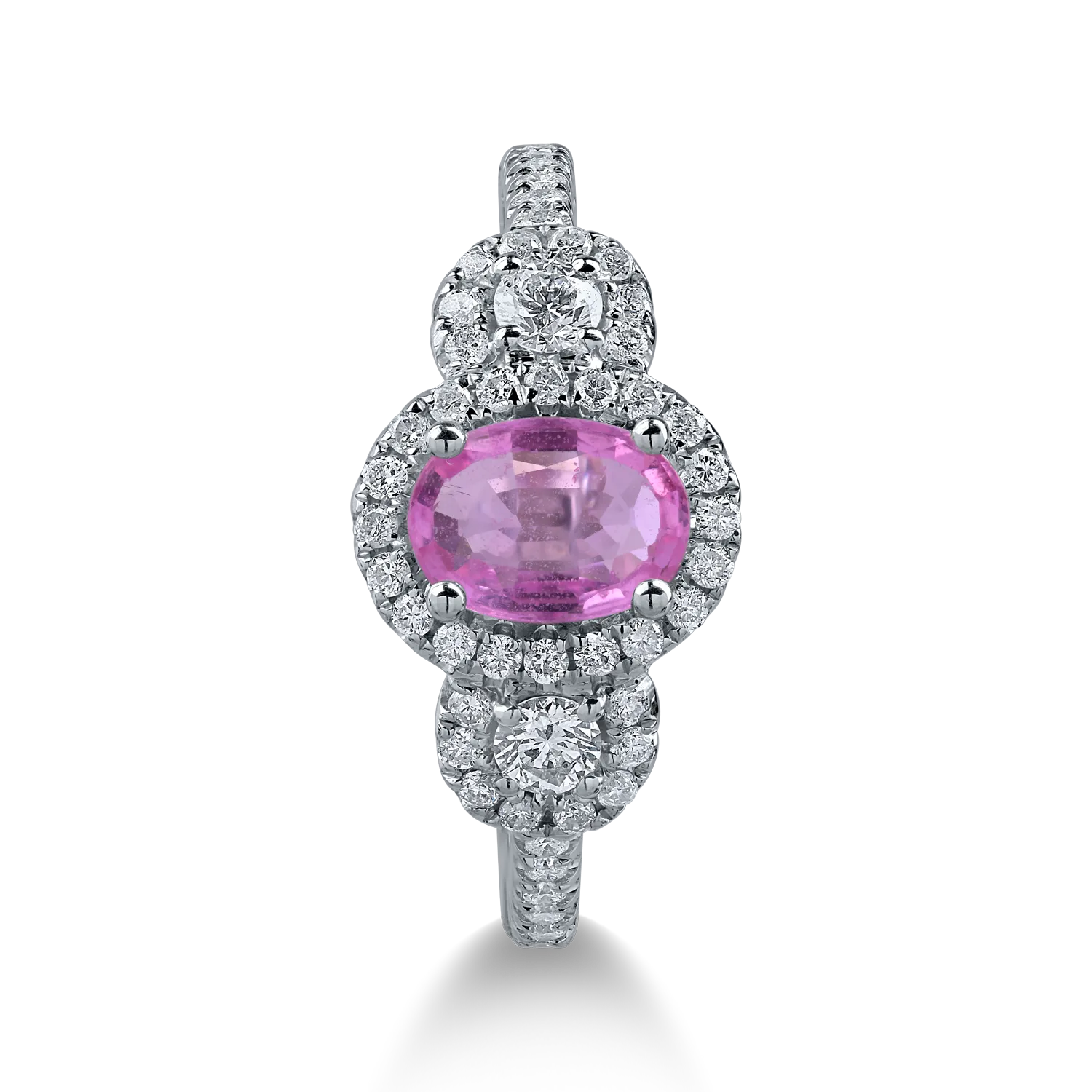 Inel din aur alb cu safir roz oval de 0.99ct si diamante de 0.5ct