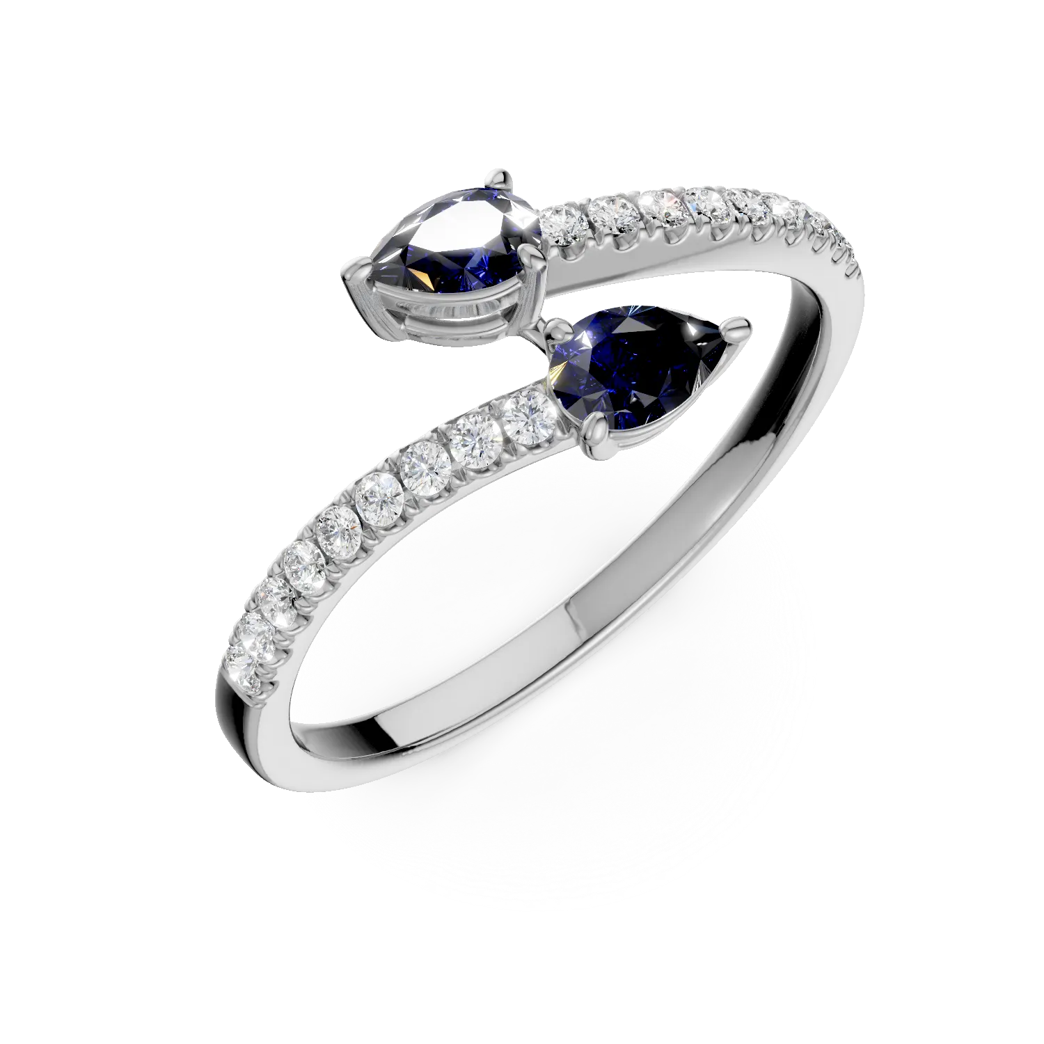Inel din aur alb cu safire pear de 0.4ct si diamante de 0.1ct