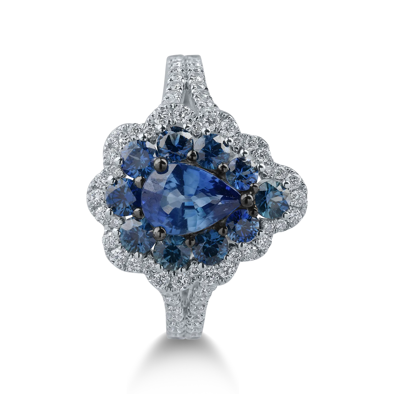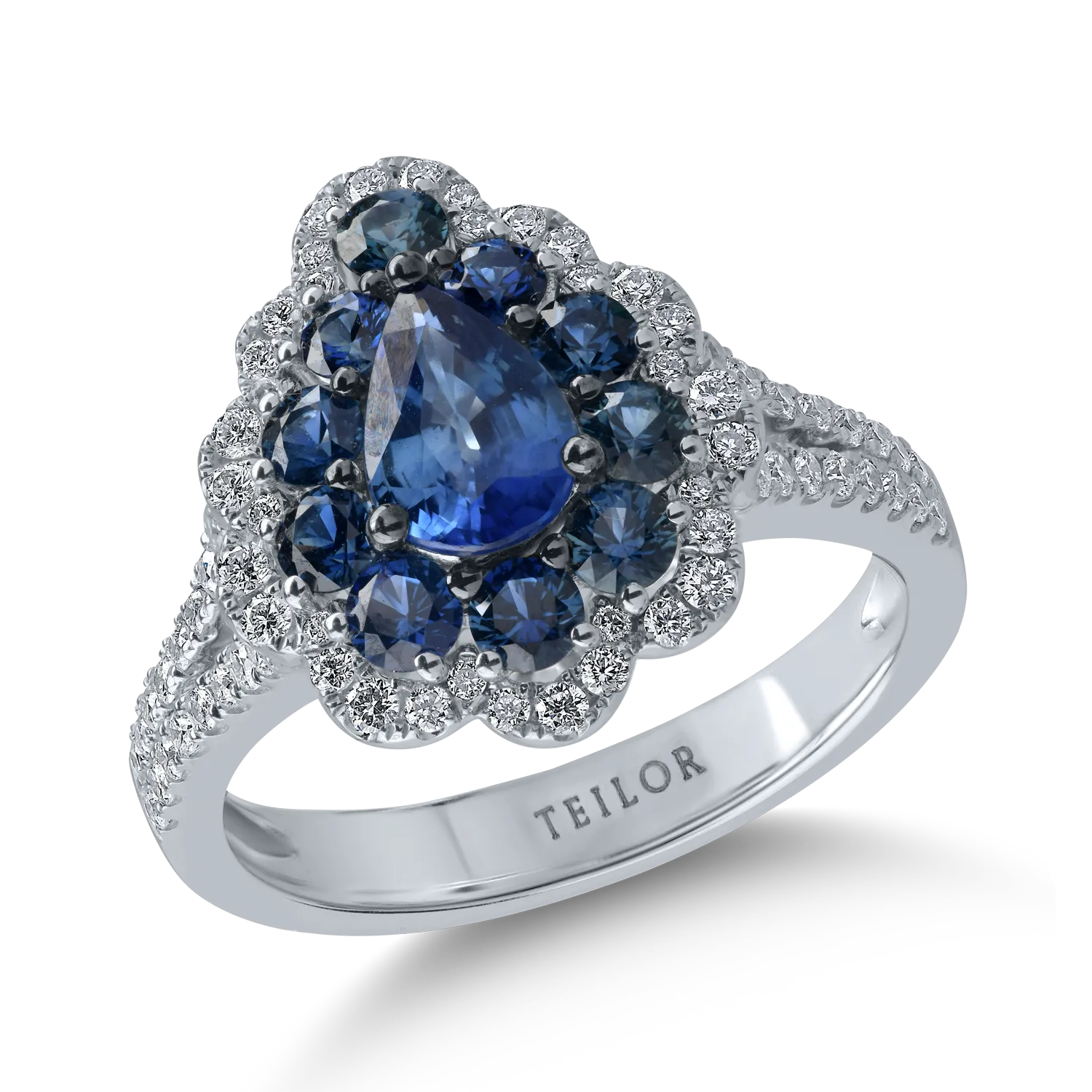 Inel din aur alb cu safire pear si rotunde de 1.58ct si diamante de 0.4ct